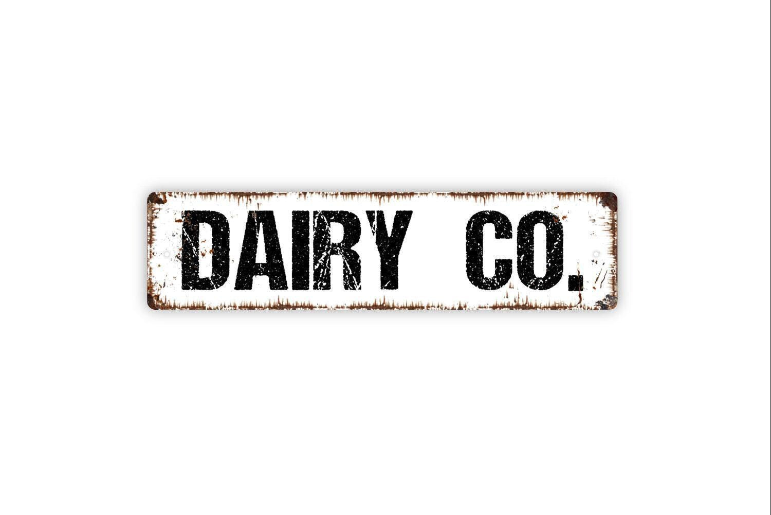 Dairy Company Sign - Farm Farmer Farmhouse Cow Cattle Milk Farm Fresh Vinyl Sticker Or Street Metal Sign or Door Name Plate Plaque
