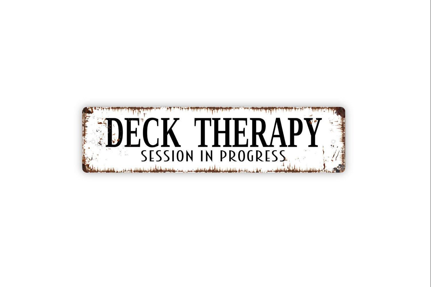 Deck Therapy Session In Progress Sign - Patio Relax Porch Backyard Vinyl Sticker Or Street Metal Sign or Door Name Plate Plaque