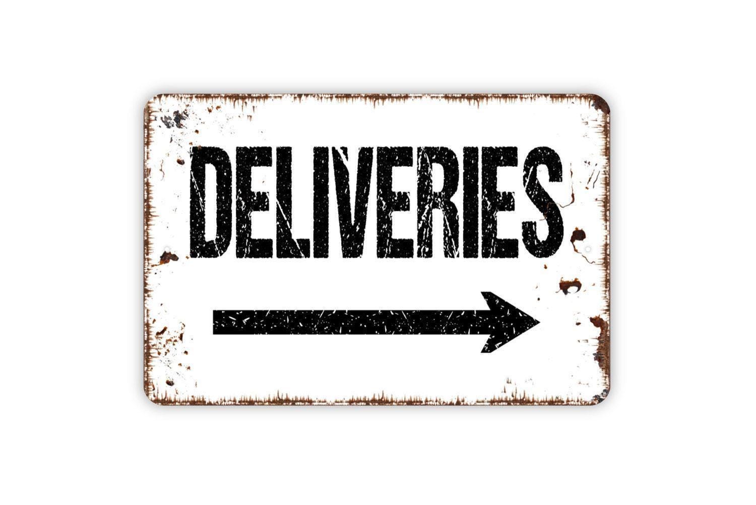 Deliveries With Arrow Sign | Directional Delivery Driver Decor | Business Warehouse Package Drop Off Notice | Metal Sign or Vinyl Sticker
