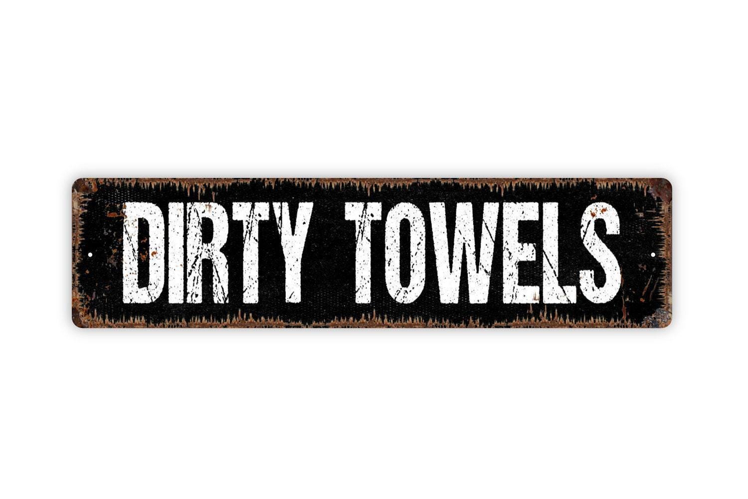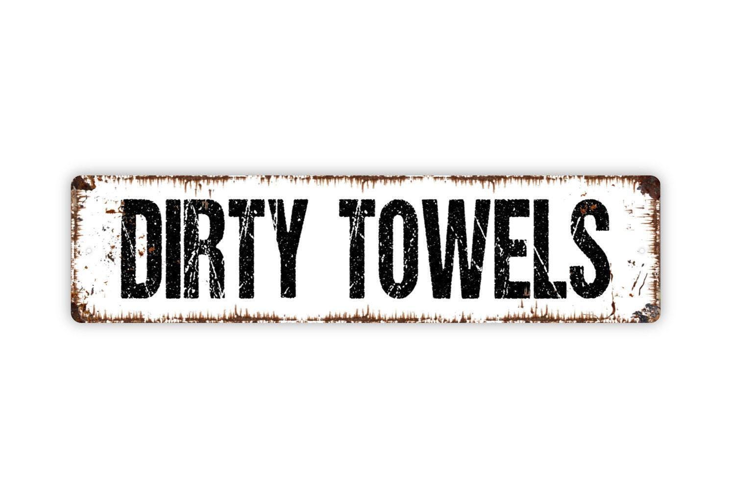 Dirty Towels Sign - Vinyl Sticker Or Metal Street Sign or Door Name Plate Plaque