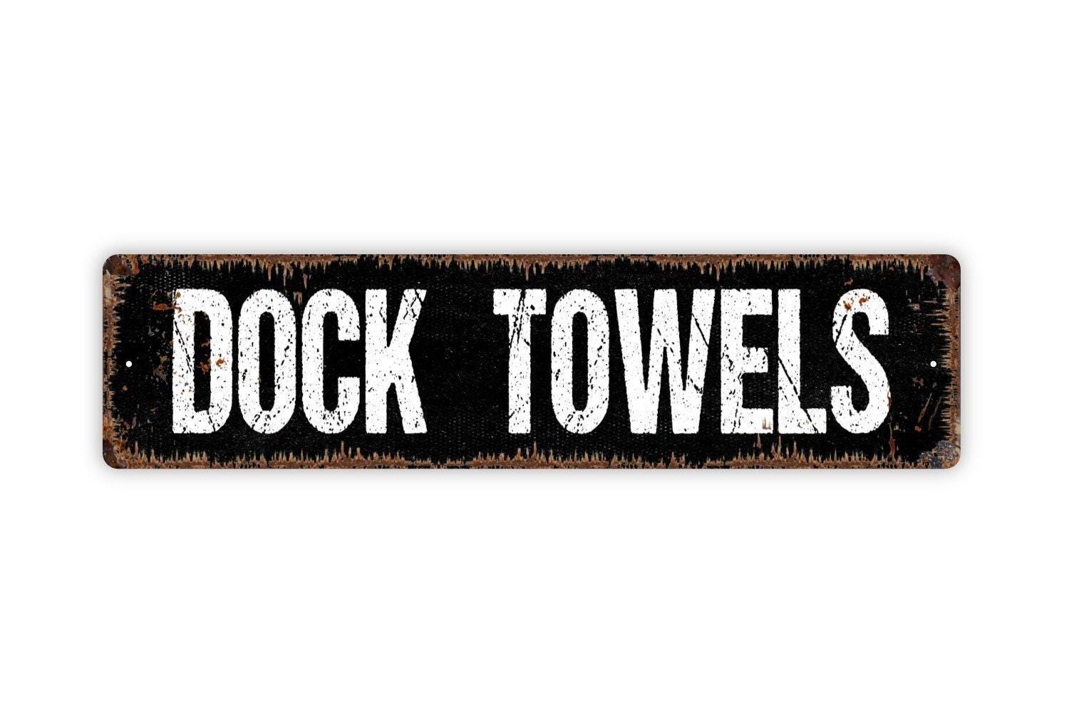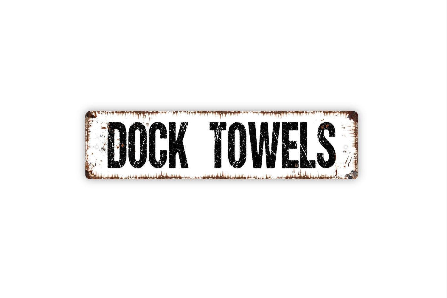 Dock Towels Sign - Boat Ship Dock Beach Pool Dirty Clean Towels Vinyl Sticker Or Street Metal Sign or Door Name Plate Plaque