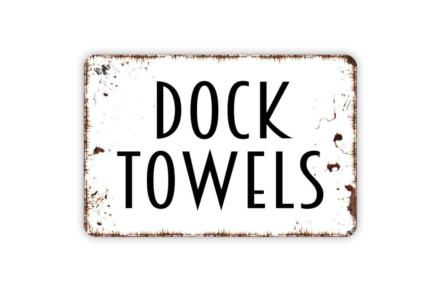 Dock Towels Sign | Rustic Lake House Wall Decor | Cabin or Lodge Wall Art | Custom Metal Sign or Vinyl Sticker | Waterfront Porch Sign