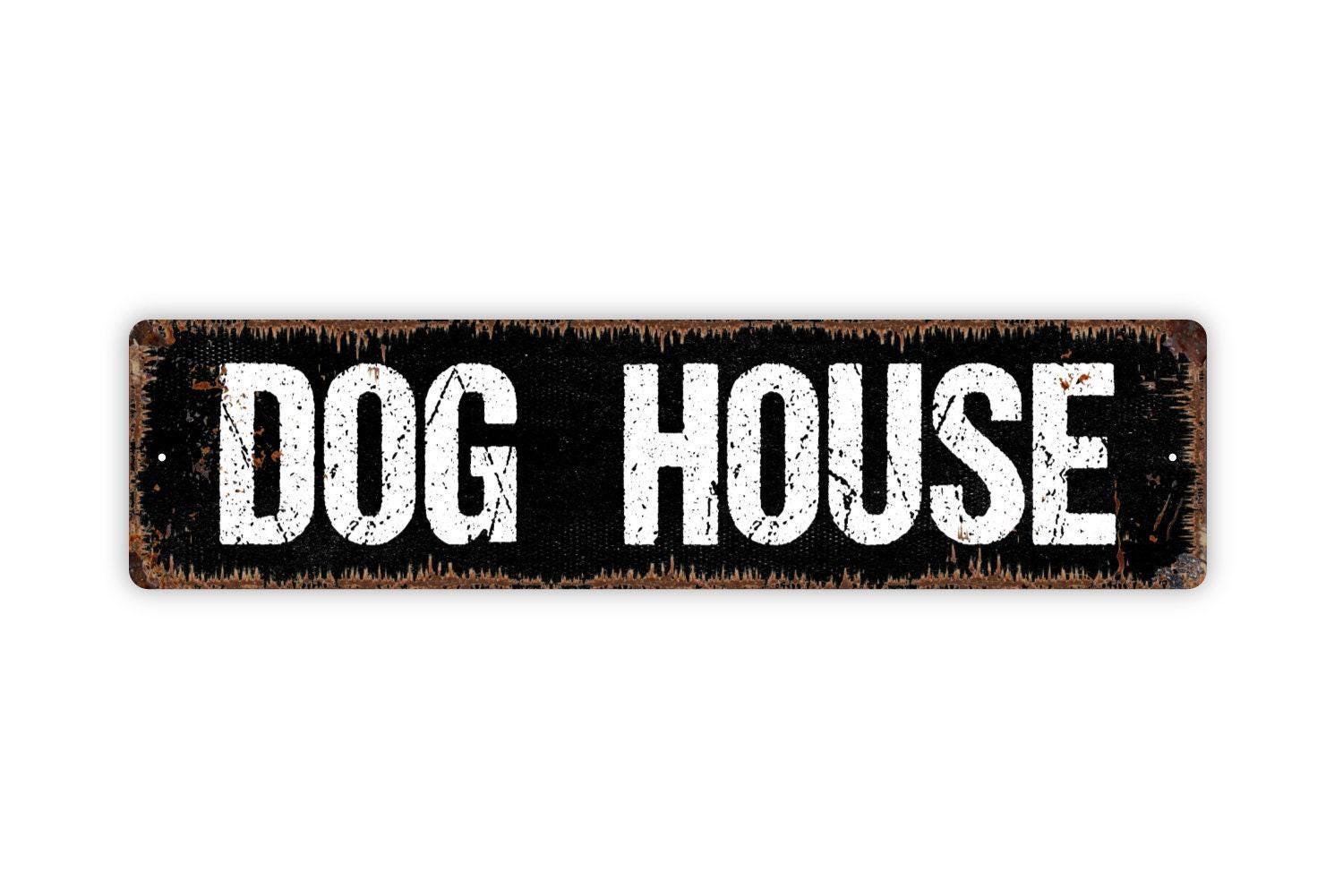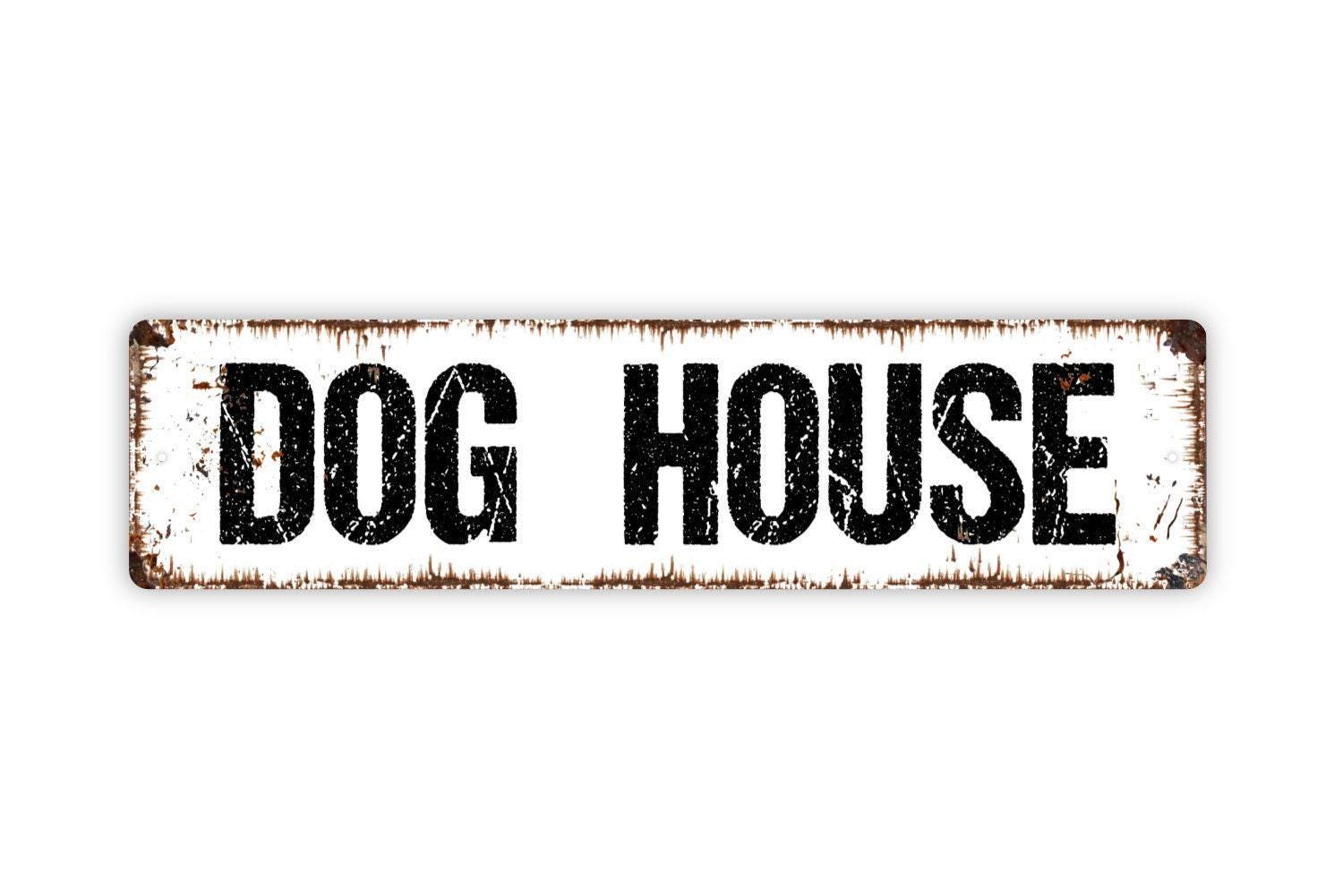 Dog House Sign - Kennel Puppy Pup Doggy K9 Vinyl Sticker Or Street Metal Sign or Door Name Plate Plaque