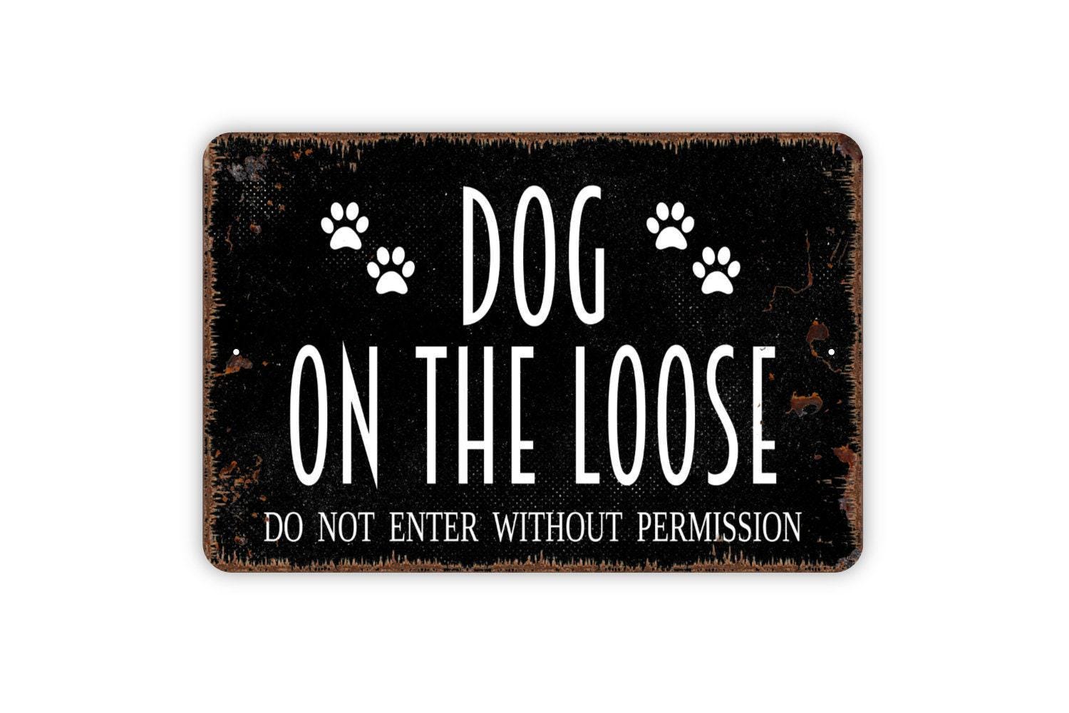 Dog On The Loose Do Not Enter Without Permission Sign - Dogs Pups Puppy K9 Backyard Fence Gate Metal Indoor or Outdoor Wall Art