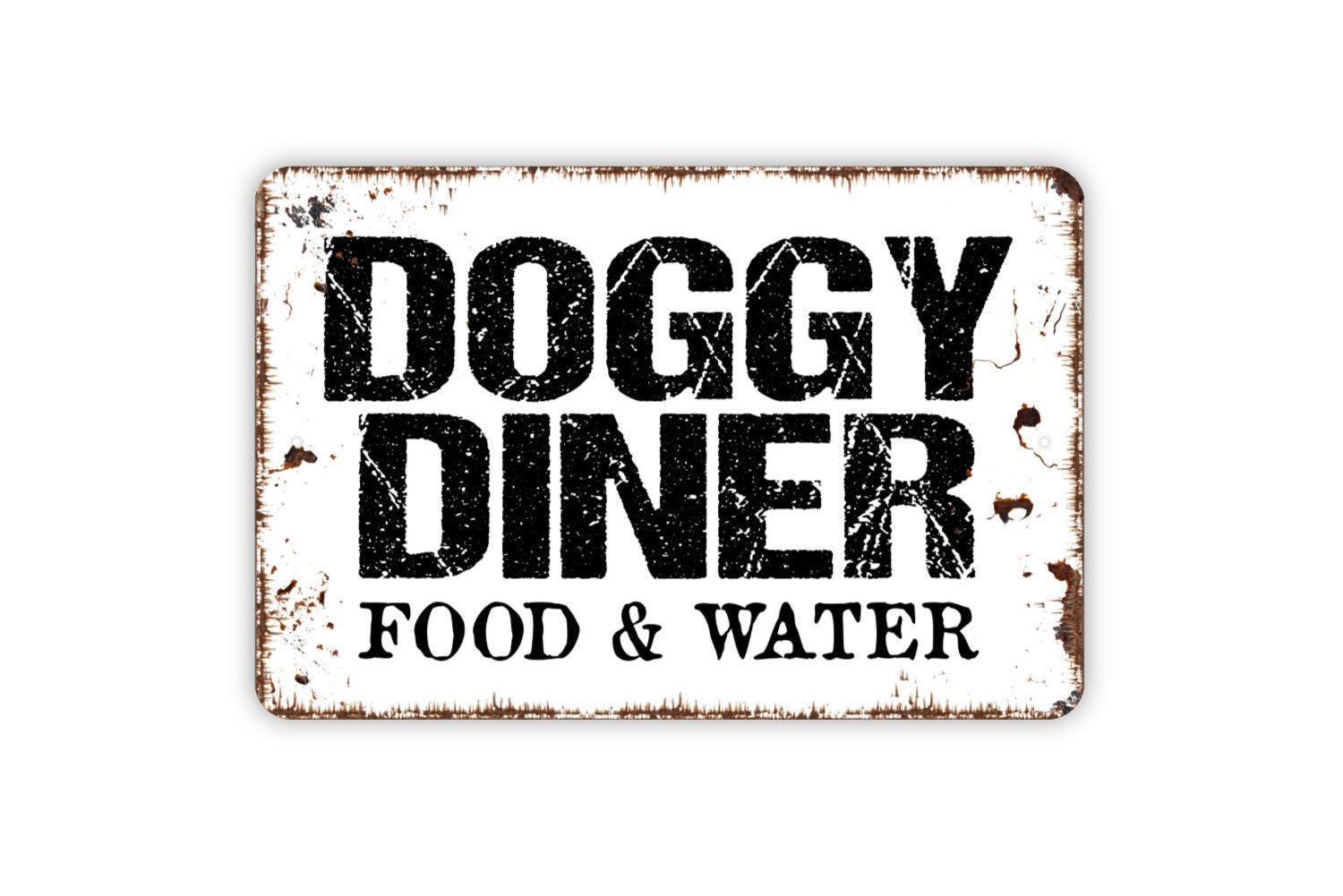 Doggy Diner Food and Water Sign - Dog Meal Metal Wall Art - Indoor or Outdoor