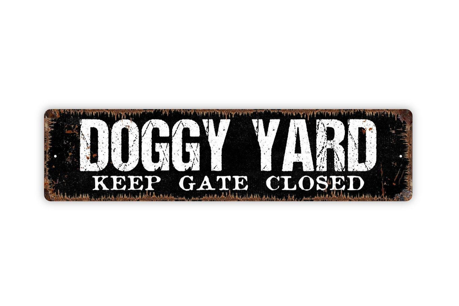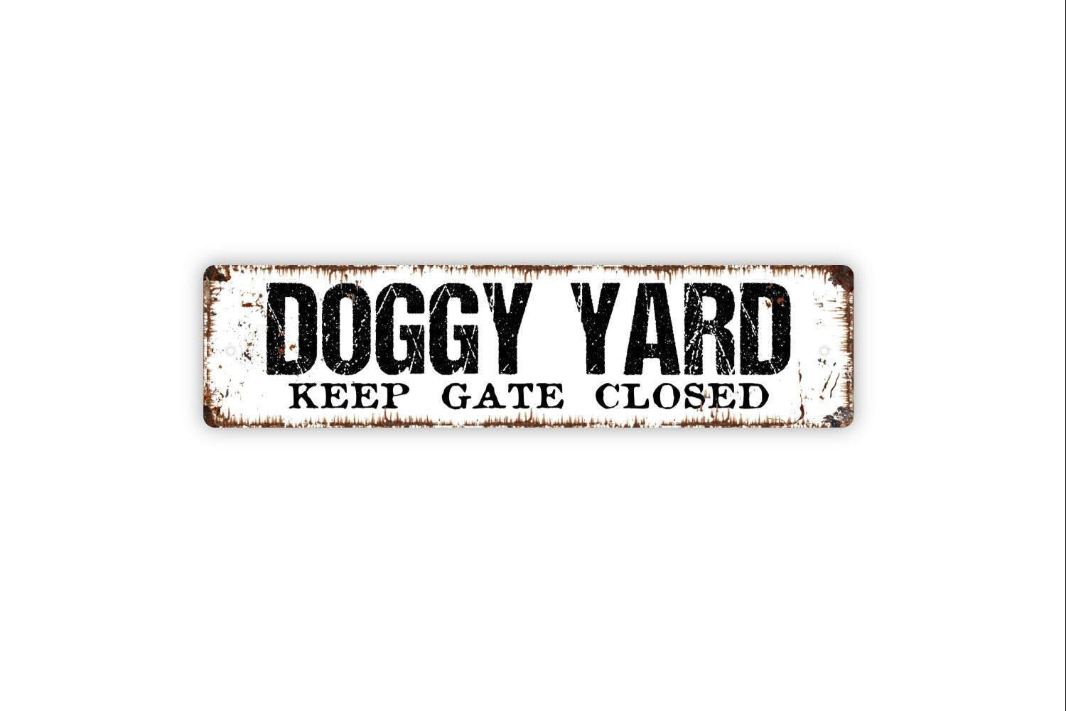 Doggy Yard Keep Gate Closed Sign | Funny Dog Lover Pet Warning | Metal Sign or Vinyl Sticker for Fence Porch Backyard Home