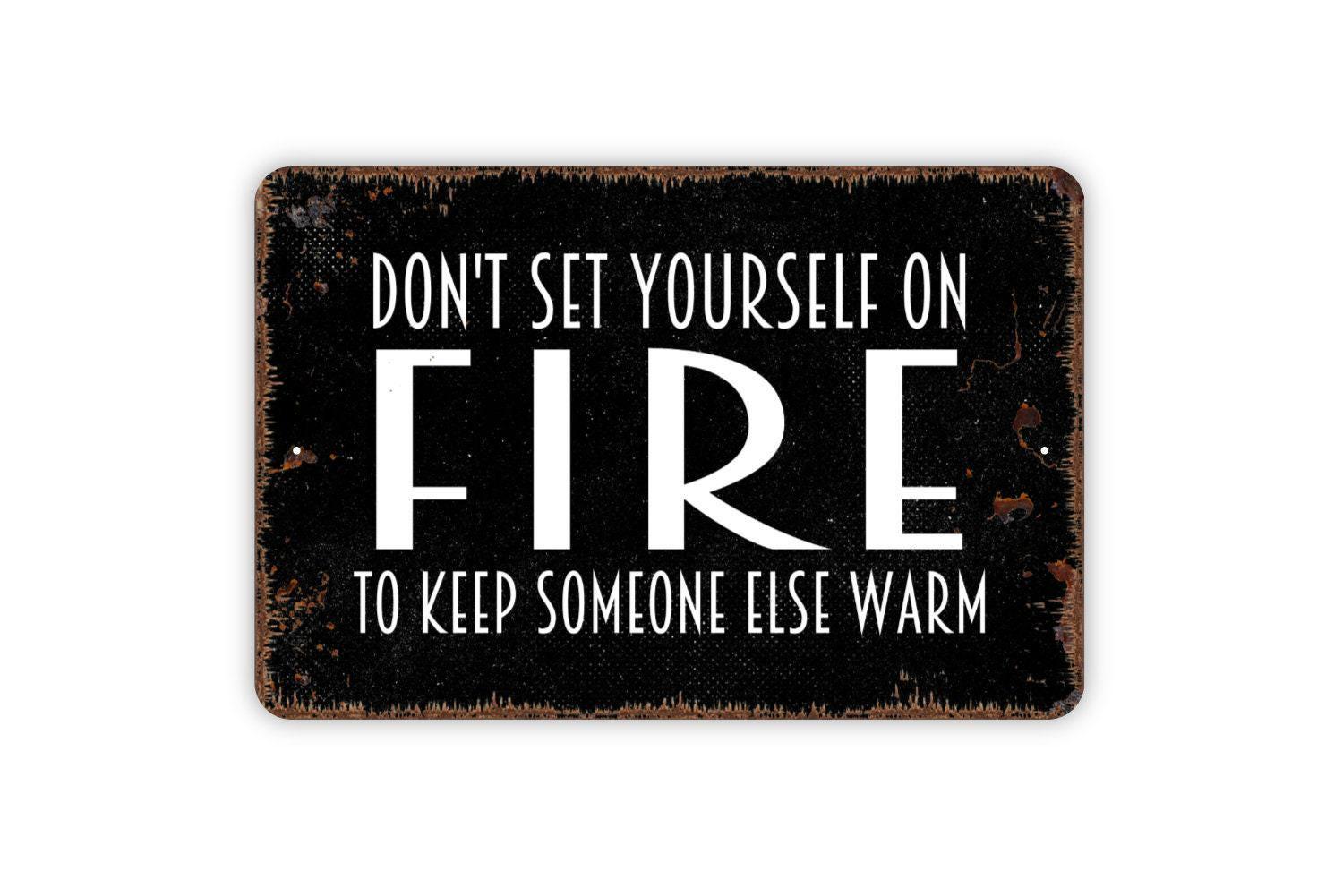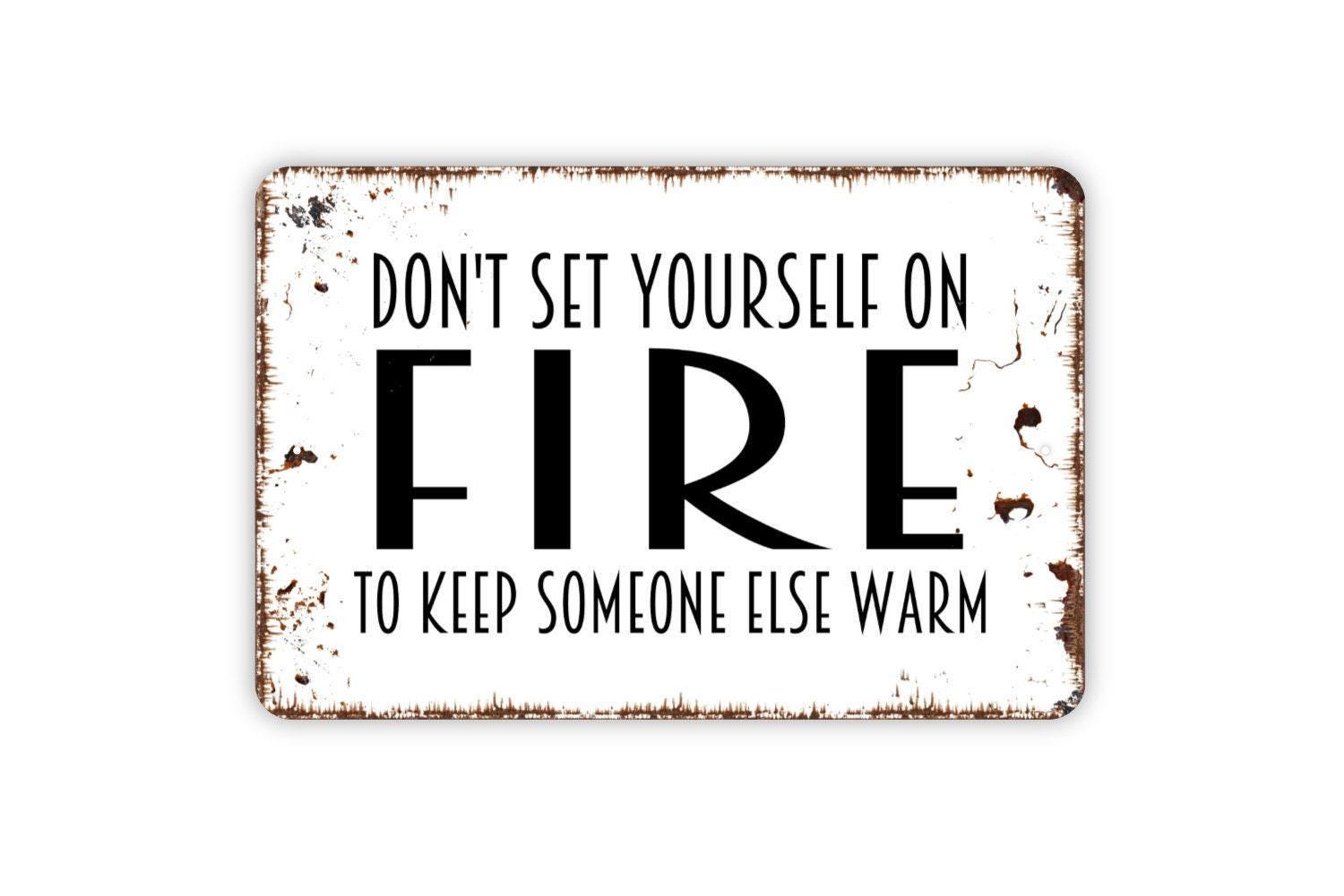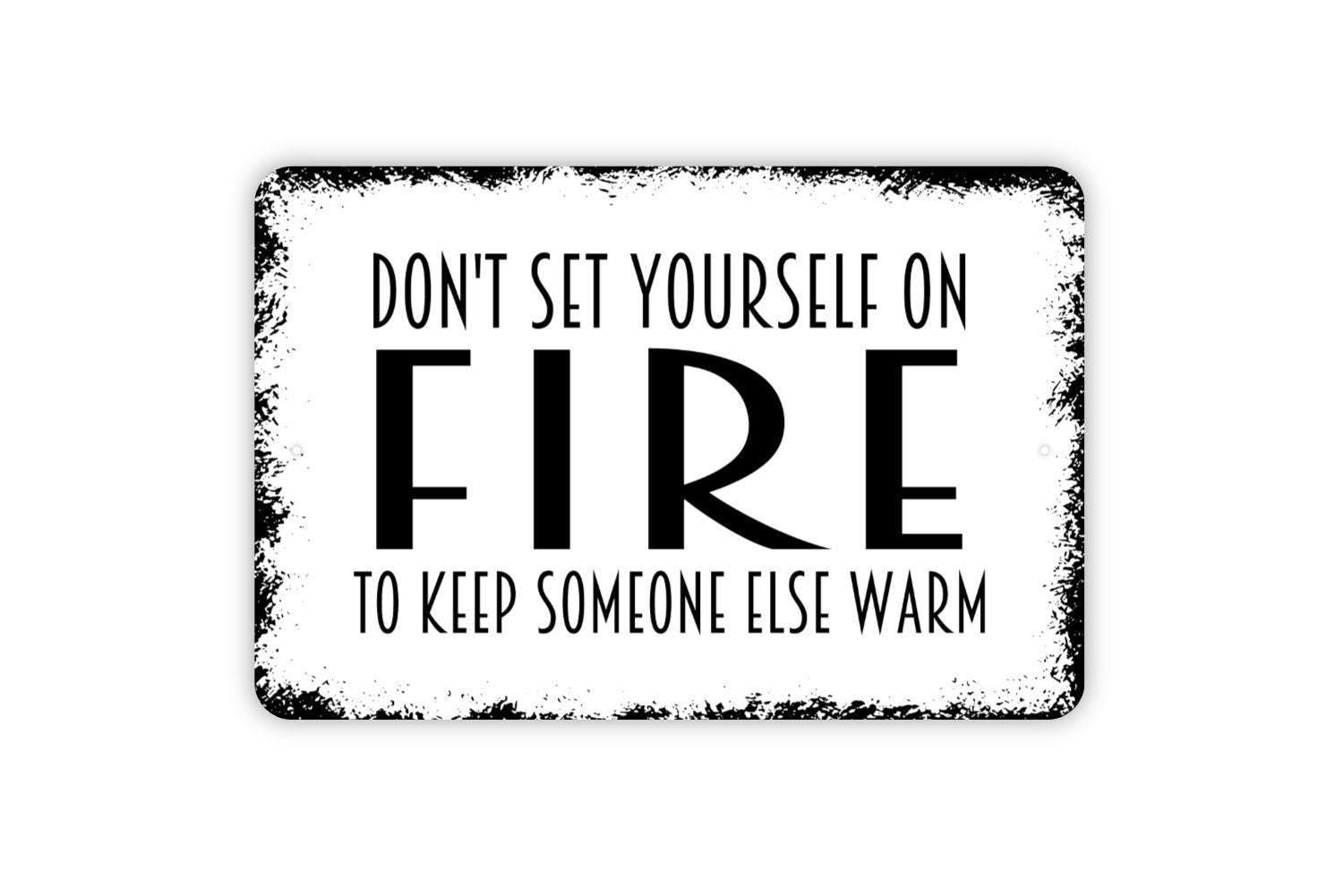 Don’t Set Yourself On Fire To Keep Someone Else Warm Sign – Inspirational Quote Wall Decor – Rustic Farmhouse Metal Sign or Vinyl Sticker