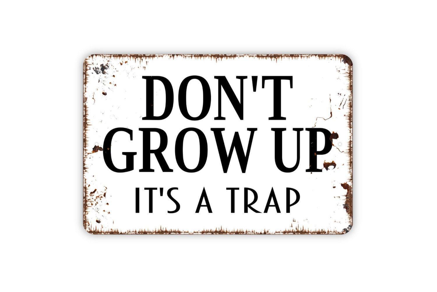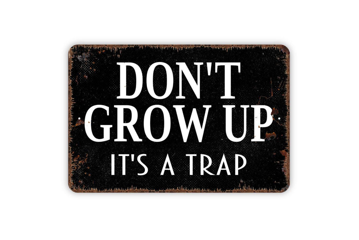 Don't Grow Up It's A Trap Sign - Man Cave or Kids Bedroom Funny Metal Wall Art