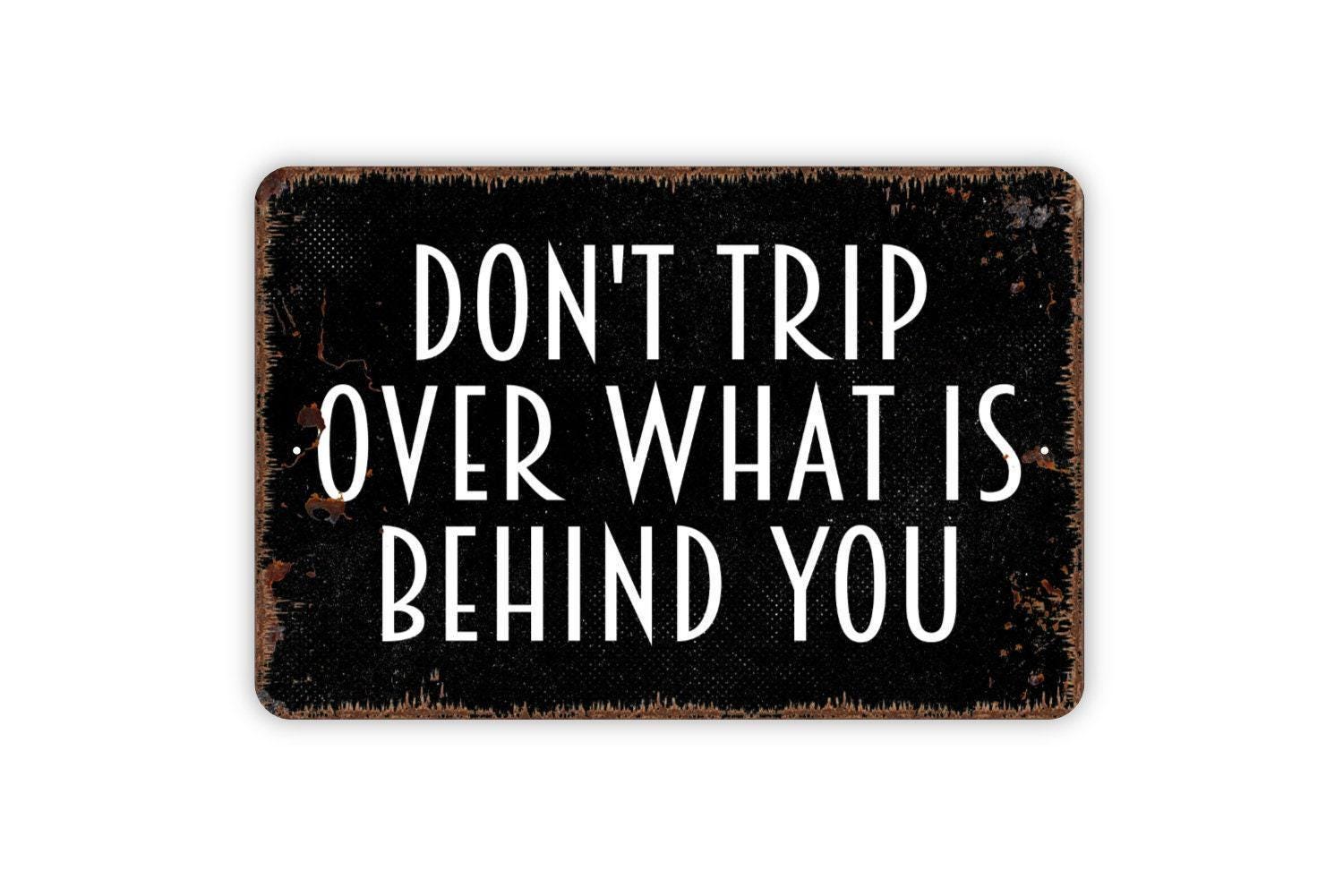 Don't Trip Over What Is Behind You Sign - Inspirational Metal Indoor or Outdoor Wall Art