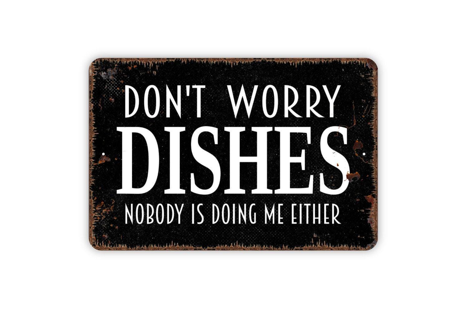 Don't Worry Dishes Nobody Is Doing Me Either Sign - Funny Kitchen Metal Sign Farmhouse Wall Decor Modern Metal Sign
