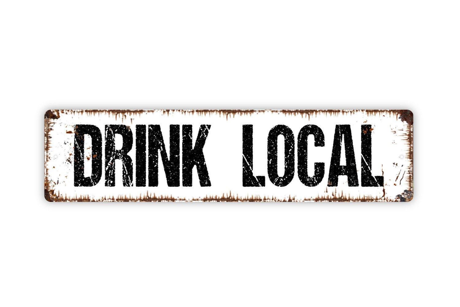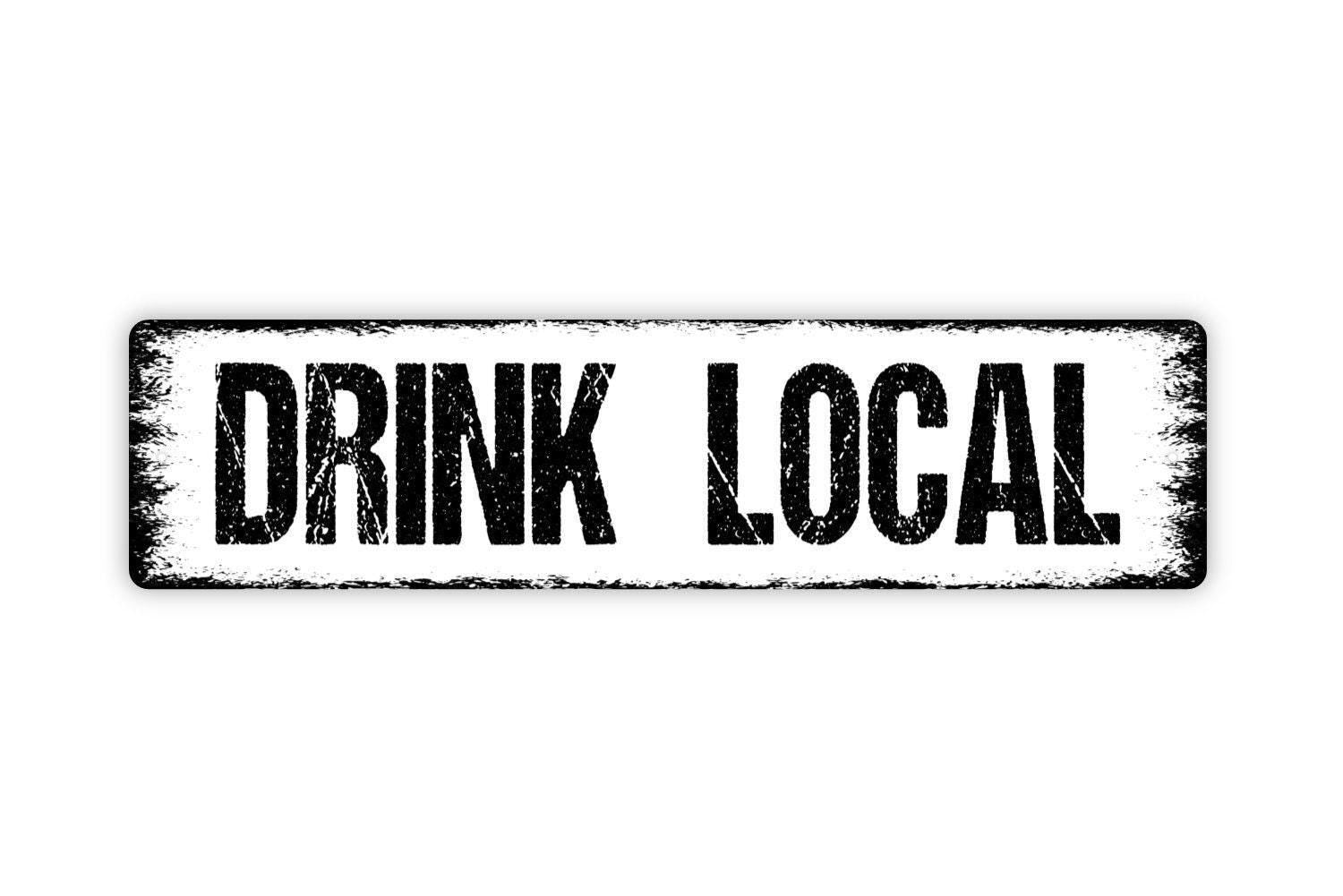 Drink Local Sign Metal or Vinyl Sticker | Rustic Bar Decor | Farmhouse Kitchen Sign | Brewery Wall Art | Local Beer Lover Gift Sticker