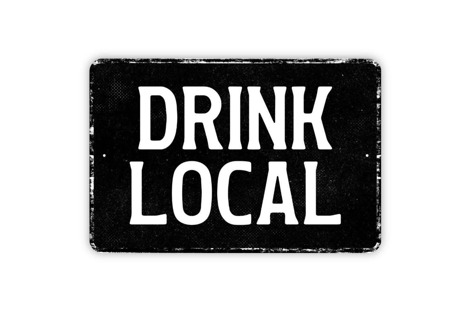 Drink Local Sign | Rustic Bar Metal Sign or Vinyl Sticker | Brewery, Pub, Home Bar, Man Cave, Kitchen, Restaurant, Beer Lover Wall Decor