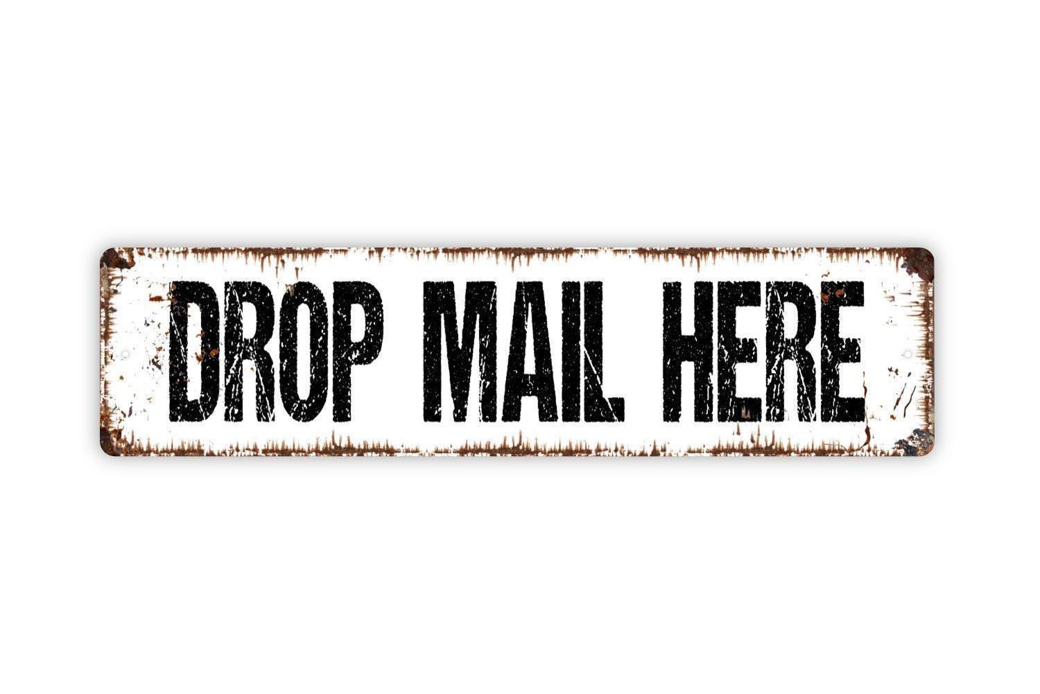 Drop Mail Here Sign | Mail Carrier Delivery Sign | Package Drop Off Porch Sign | Home or Office Mailbox Sign | Metal or Vinyl Sticker