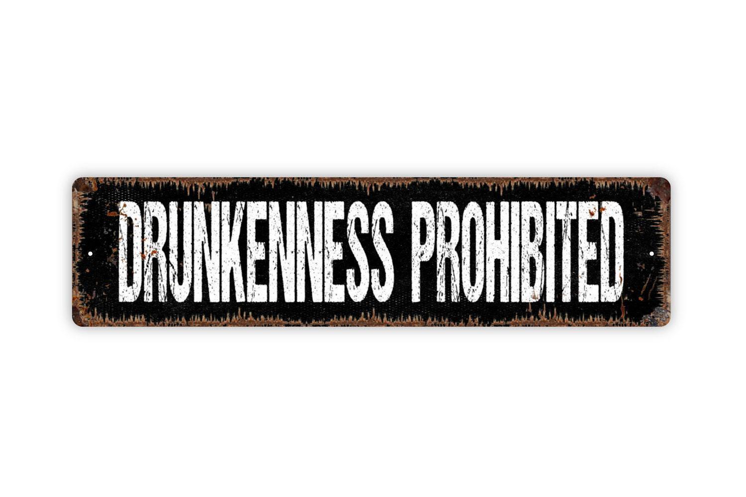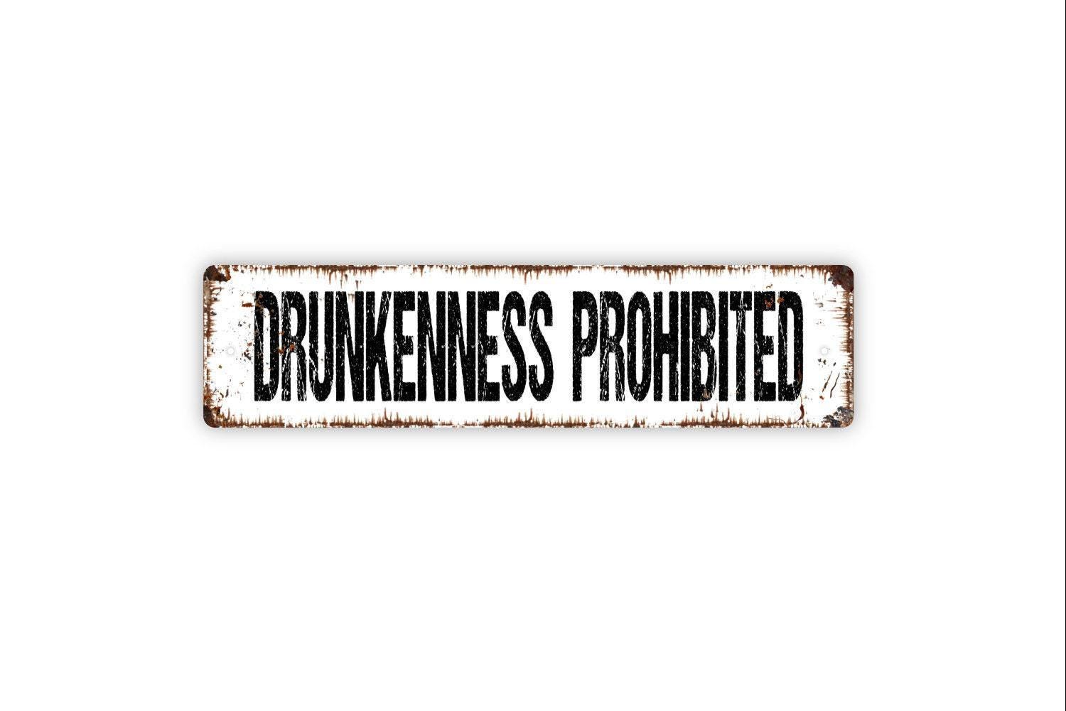 Drunkenness Prohibited Sign – Funny Bar Pub Tavern Wall Decor – Rustic Drinking Room Plaque – Alcohol Humor Gift - Metal Sign or Sticker