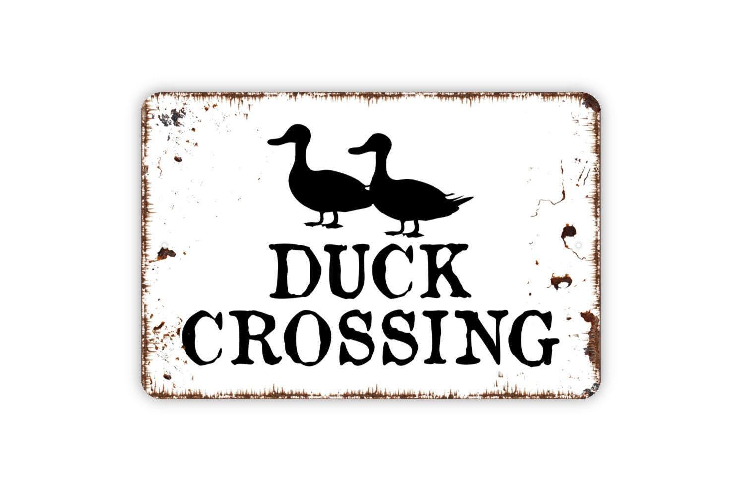 Duck Crossing Sign - Waterfowl Quack Birds Metal Sign Modern Wall Art Indoor Or Outdoor