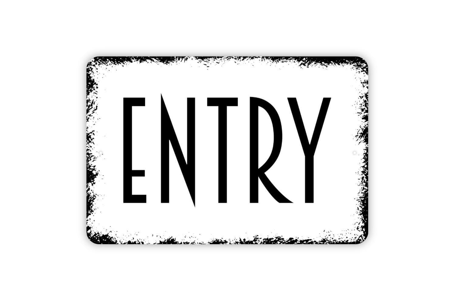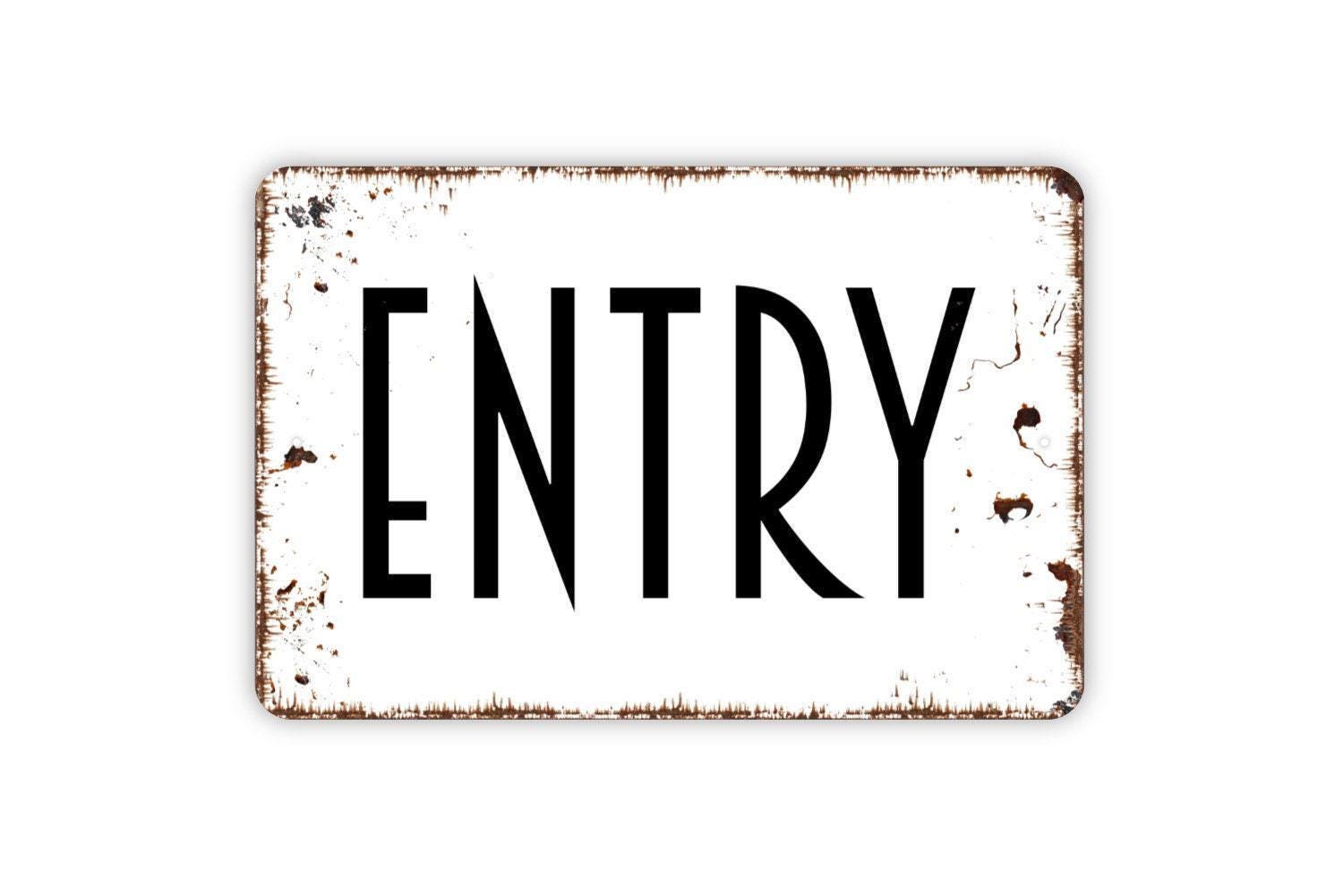 Guide guests with this Entry Sign, available as a metal sign or vinyl sticker. Perfect for offices, schools, clinics, stores, or homes, it provides a clear and professional message. A simple way to direct visitors and keep spaces organized.