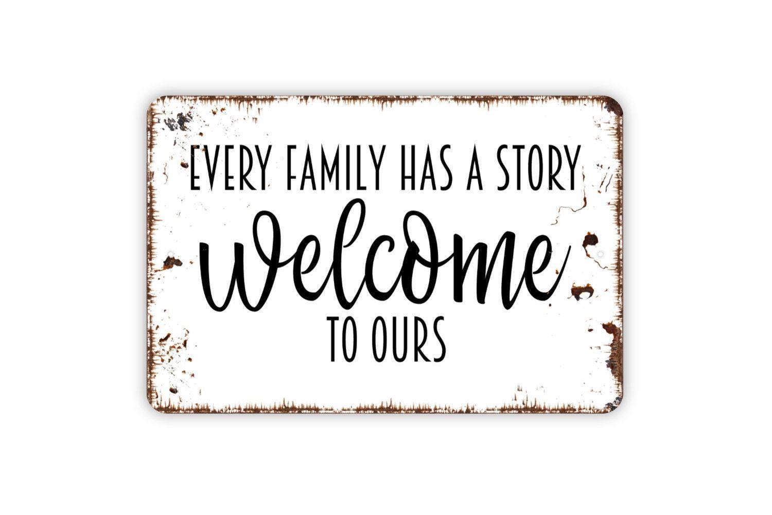 Every Family Has A Story Welcome To Ours Sign - Metal Indoor or Outdoor Wall Art