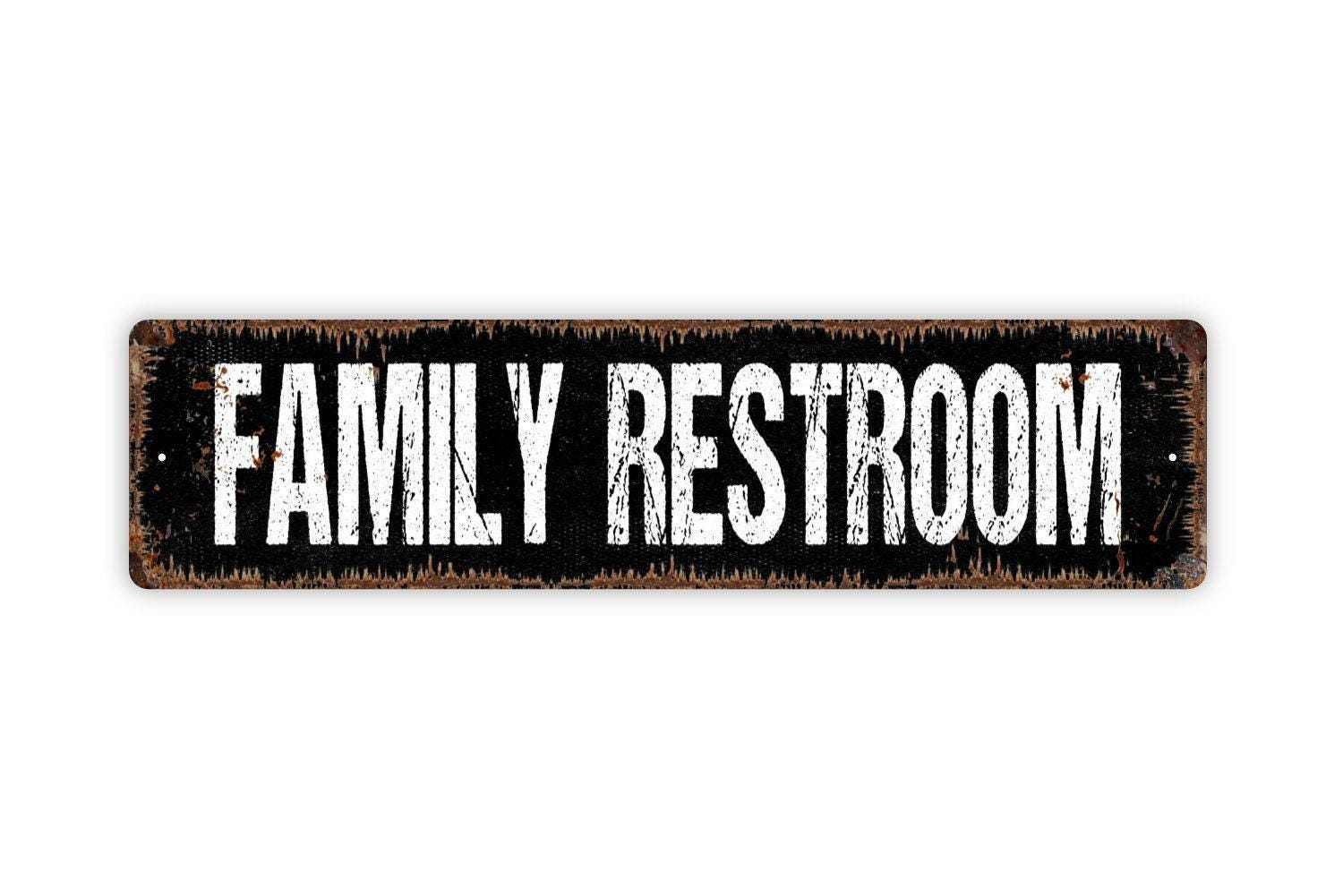 Family Restroom Sign | Rustic Bathroom Wall Sign for Business, Restaurant, or Office | Metal Sign or Vinyl Sticker Restroom Décor
