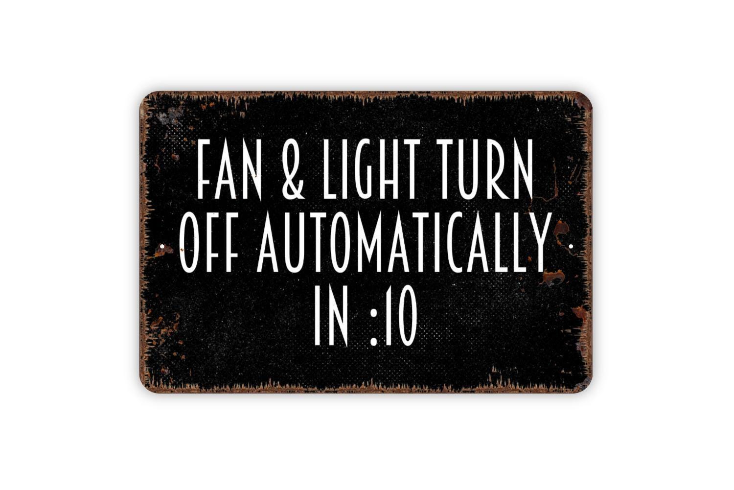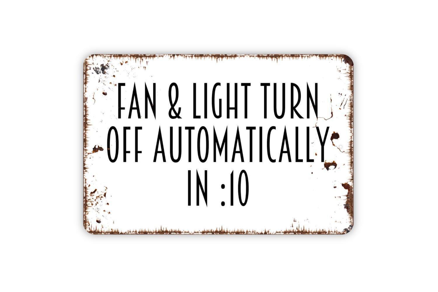 Fan And Light Turn Off Automatically In 10 Minutes Sign - Bathroom Restroom Kitchen Metal Wall Art