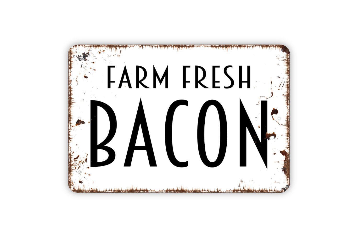 Farm Fresh Bacon Sign | Rustic Farmhouse Kitchen Wall Decor | Metal Sign or Vinyl Sticker for Butcher Shop Deli Restaurant