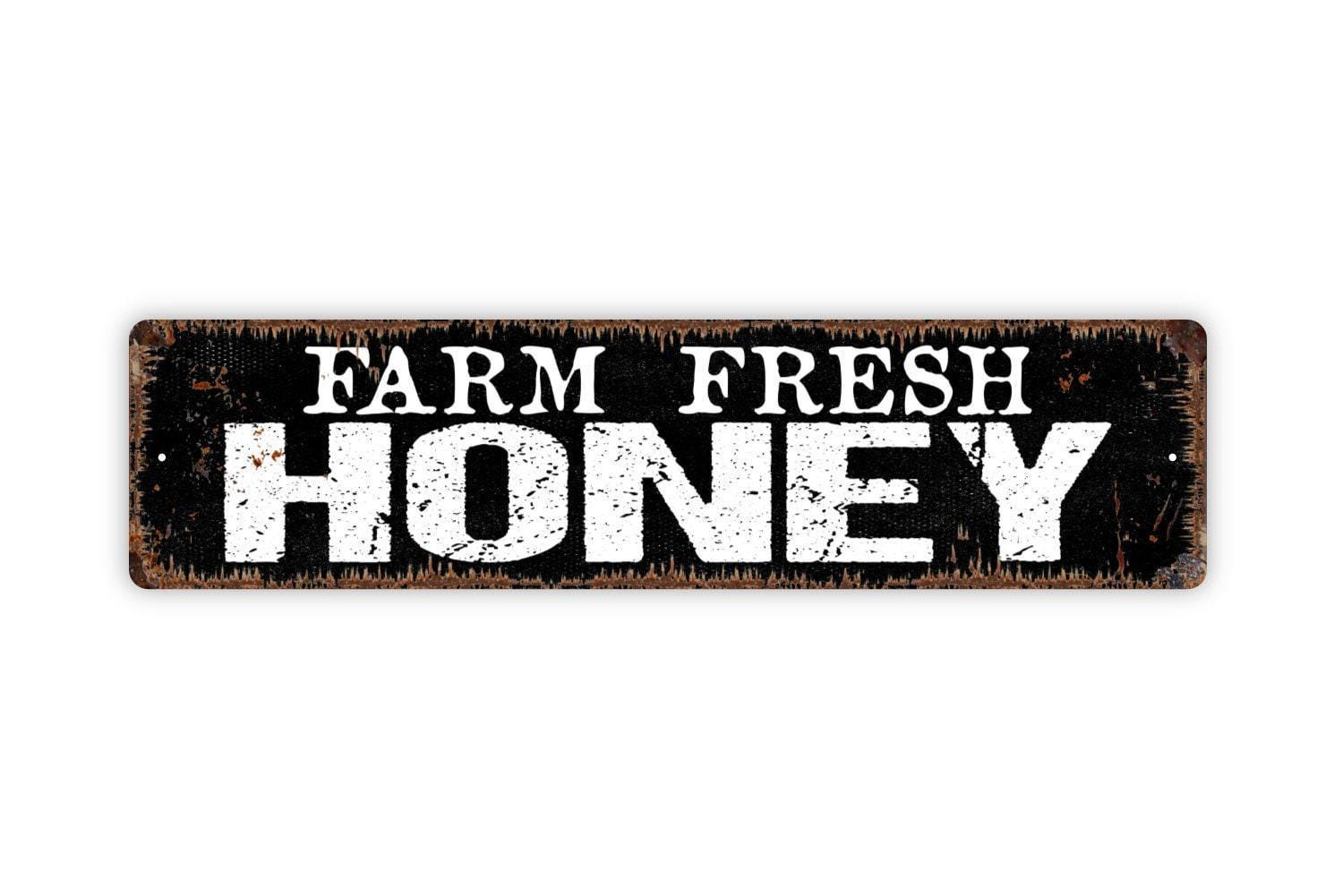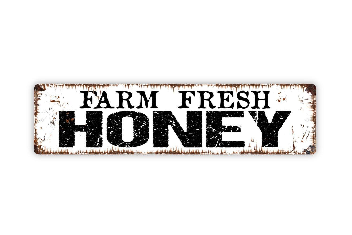 Farm Fresh Honey Sign - Beekeeper Beehive Bumble Bee Garden Farmers Market Vinyl Sticker Or Street Metal Sign or Door Name Plate Plaque