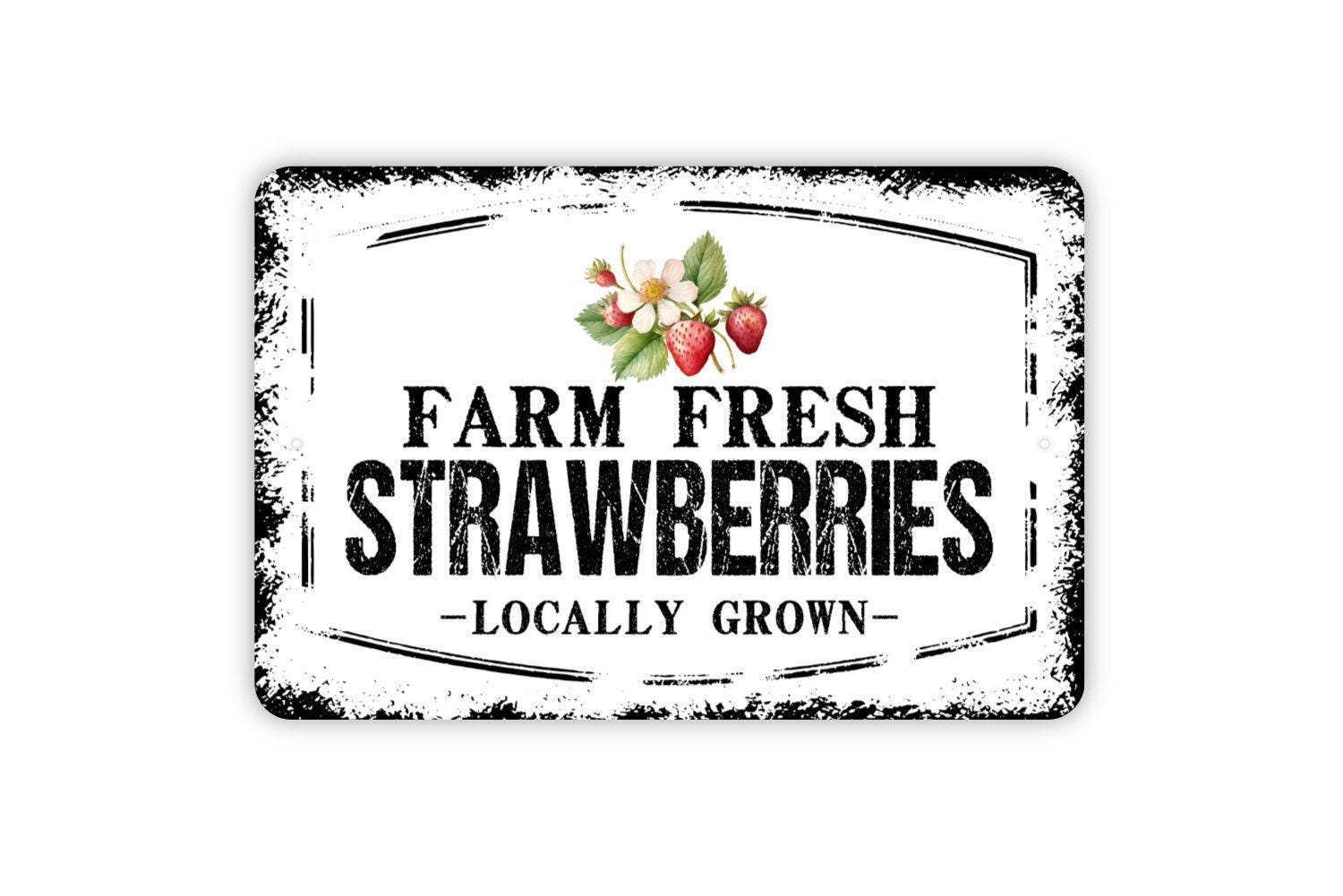 Farm Fresh Strawberries Locally Grown Sign - Strawberry Patch Fruit Farmers Market Metal Sign Wall Art Indoor Or Outdoor