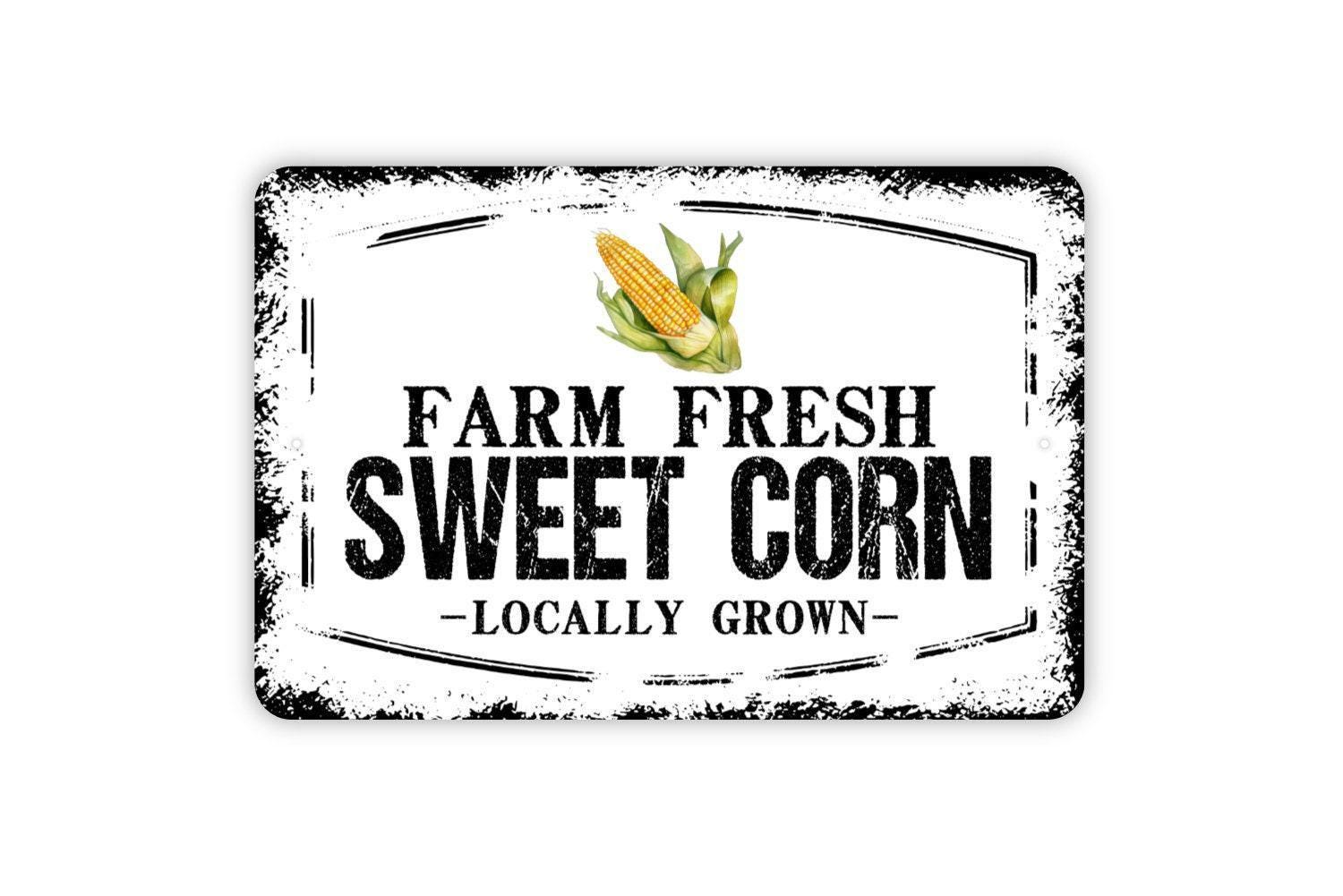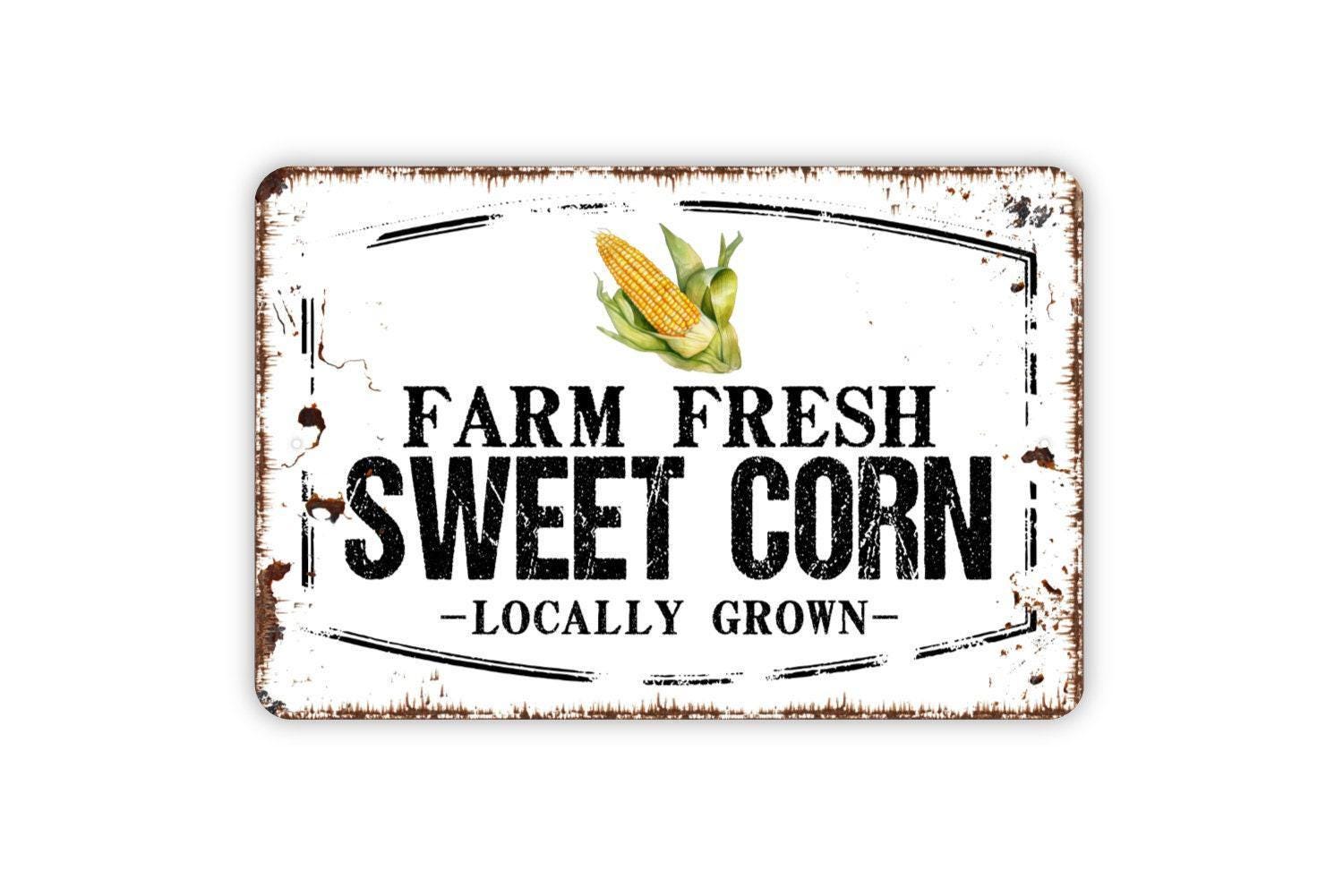 Farm Fresh Sweet Corn Locally Grown Sign – Farmers Market Vegetable Stand Wall Decor – Rustic Country Kitchen Metal Sign or Sticker