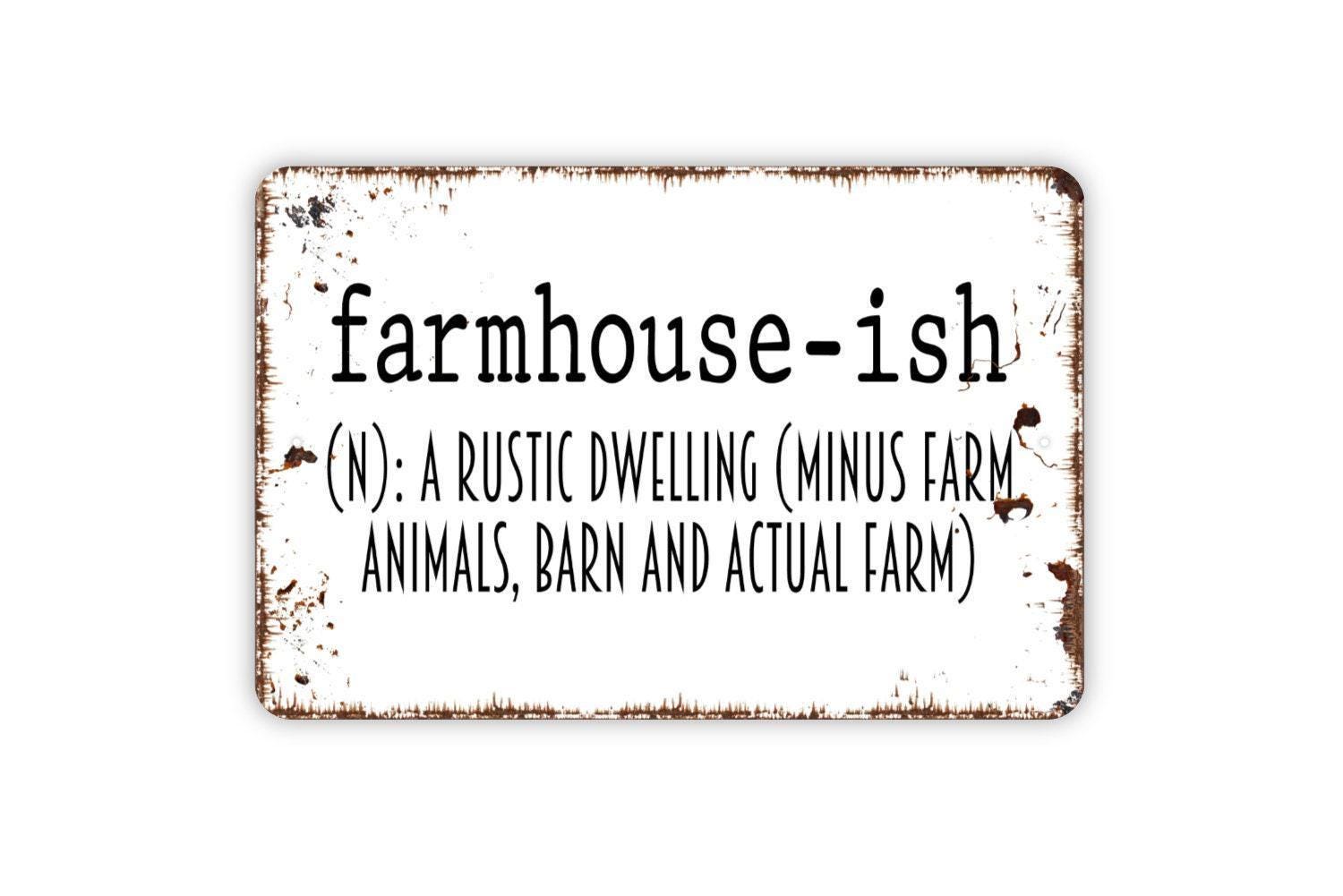 Farmhouseish Definition Sign – Funny Farmhouse Wall Decor – Rustic Country Home Living Room Kitchen Entryway Accent Metal Sign or Sticker