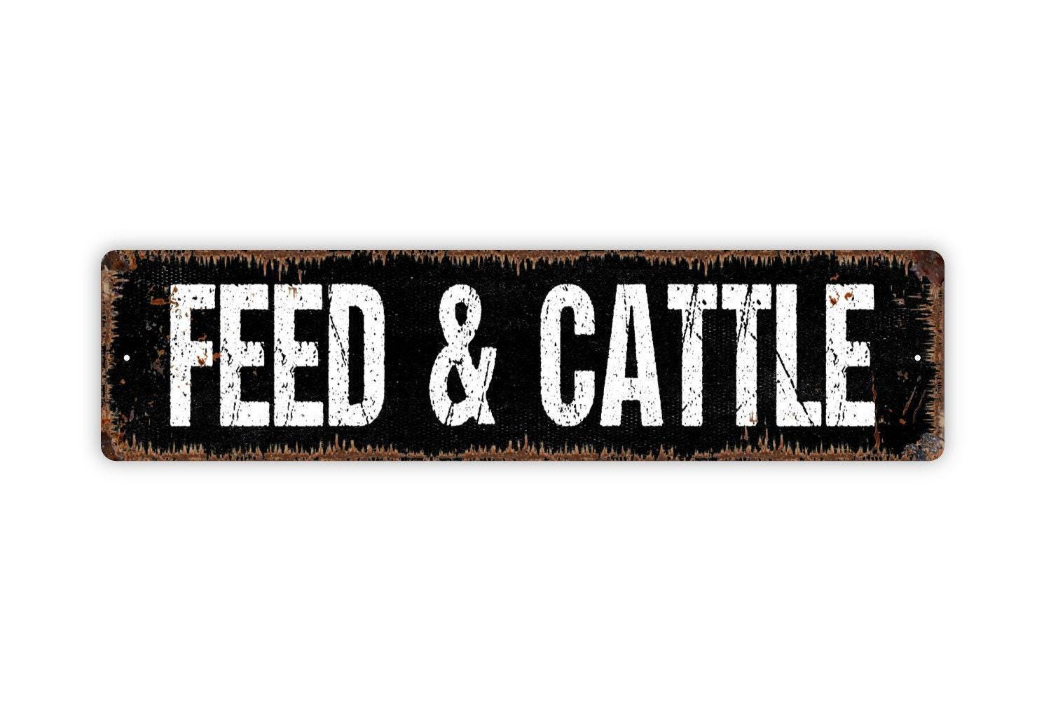 Feed and Cattle Sign - Farm Ranch Company Co Vinyl Sticker Or Street Metal Sign or Door Name Plate Plaque