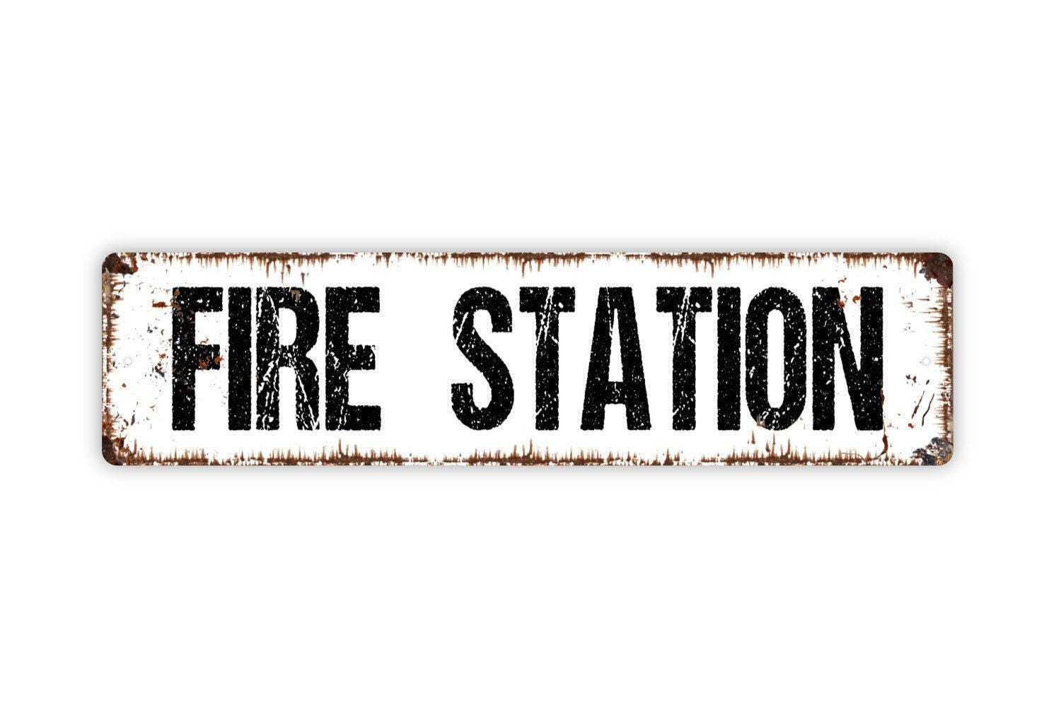 Fire Station Sign Metal or Vinyl Sticker | Firefighter Wall Decor | Firehouse Gift | Fire Department Station Sign | Custom Size Options