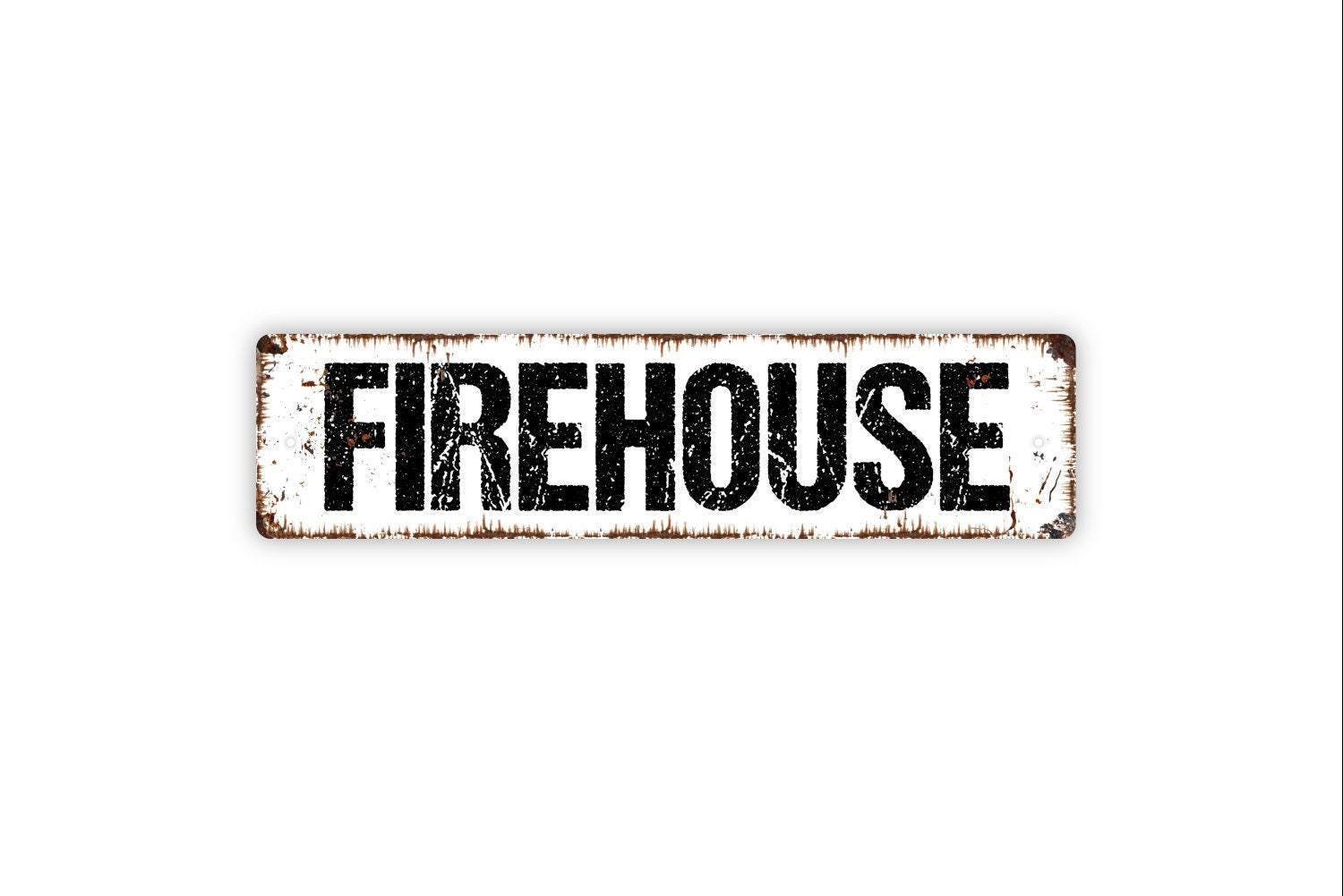 Firehouse Metal Sign, Firefighter Man Cave Vinyl Sticker Or Custom Name Metal Sign, Vinyl Sticker Or Street Sign or Door Name Plate Plaque