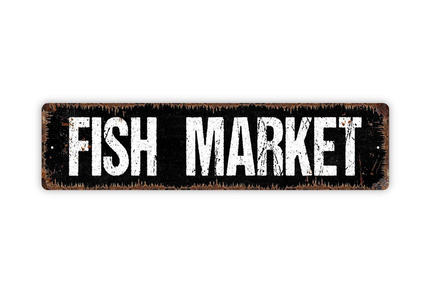 Fish Market Sign - Fish House Fishing Store Fresh Catch Seafood Vinyl Sticker Or Street Metal Sign or Door Name Plate Plaque