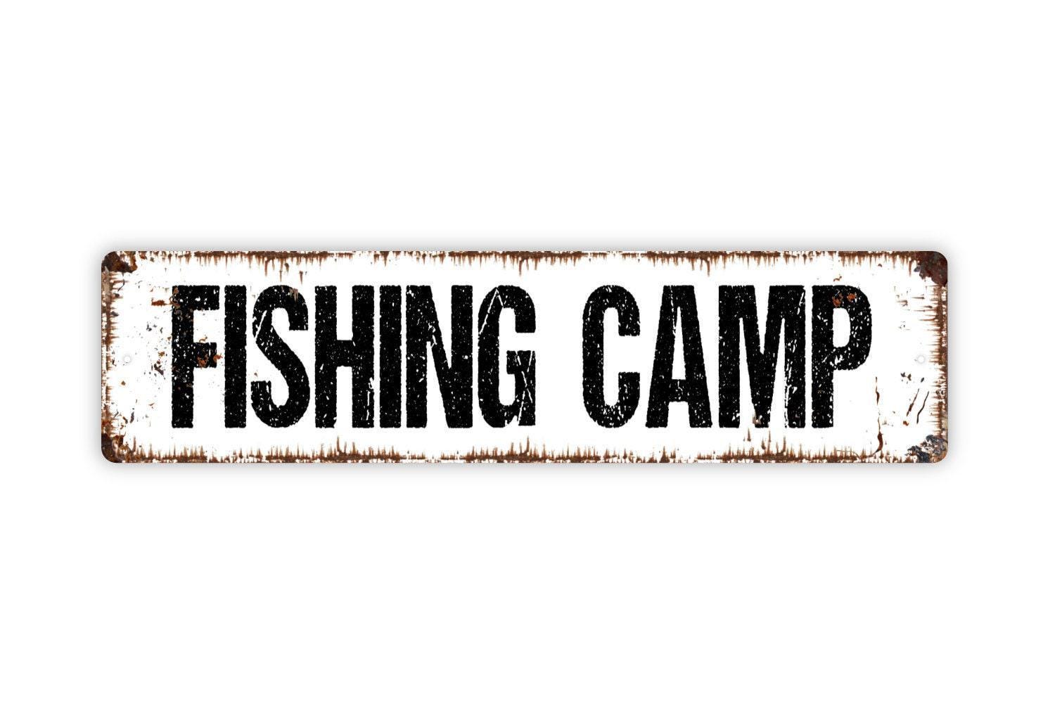 Fishing Camp Sign - Vinyl Sticker Or Metal Street Sign or Door Name Plate Plaque