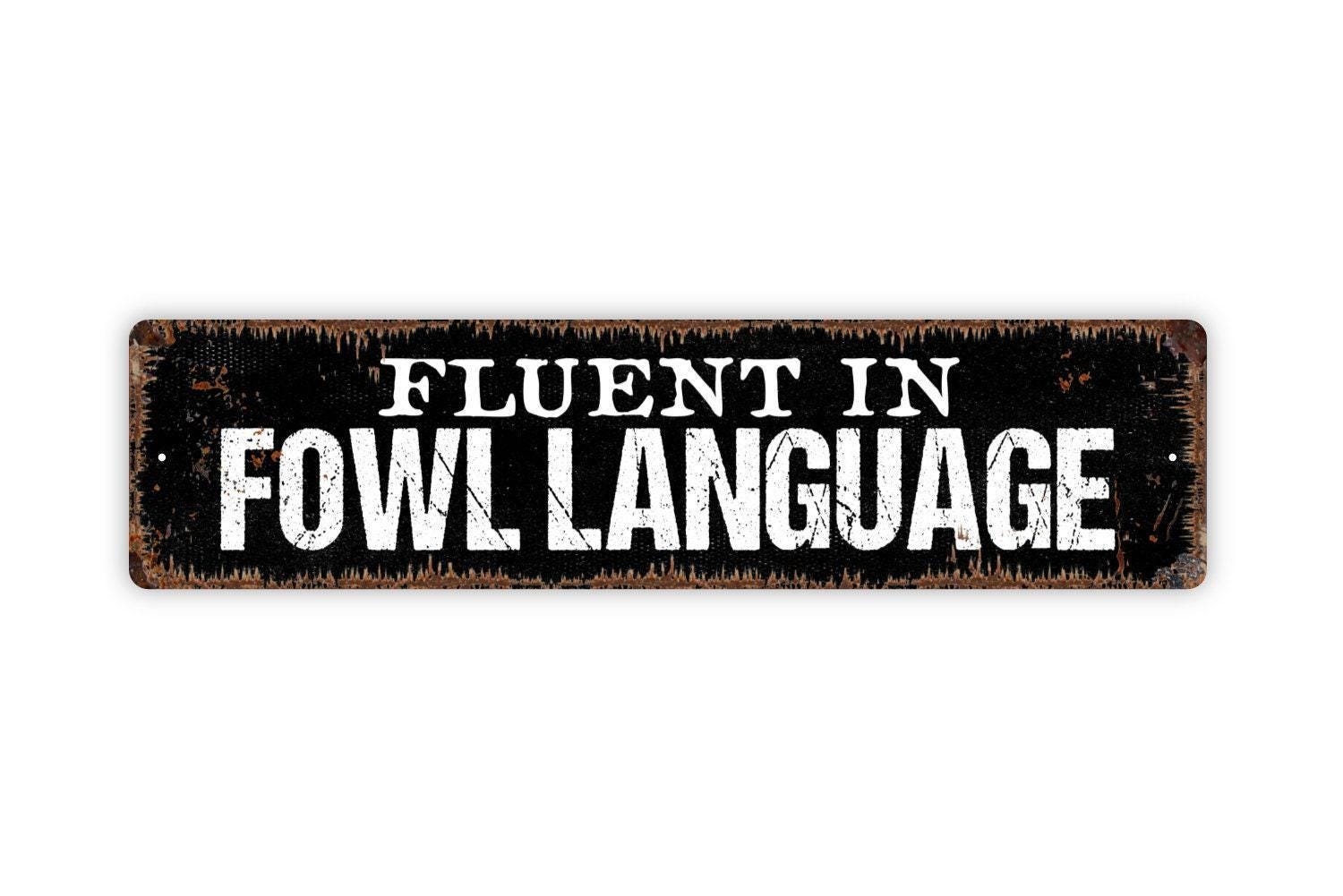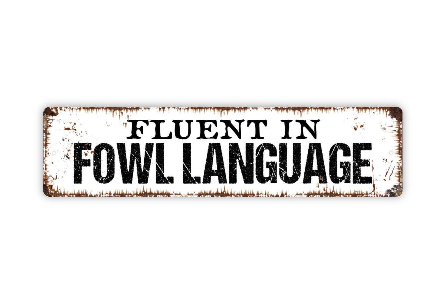 Fluent In Fowl Language Sign – Funny Chicken Coop Hen House Farm Barnyard Decor – Rustic Farmhouse Wall Art – Metal Sign or Sticker