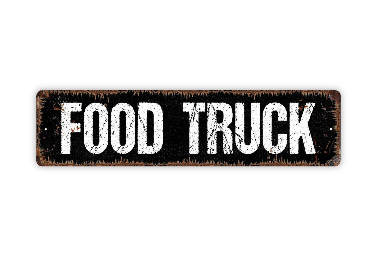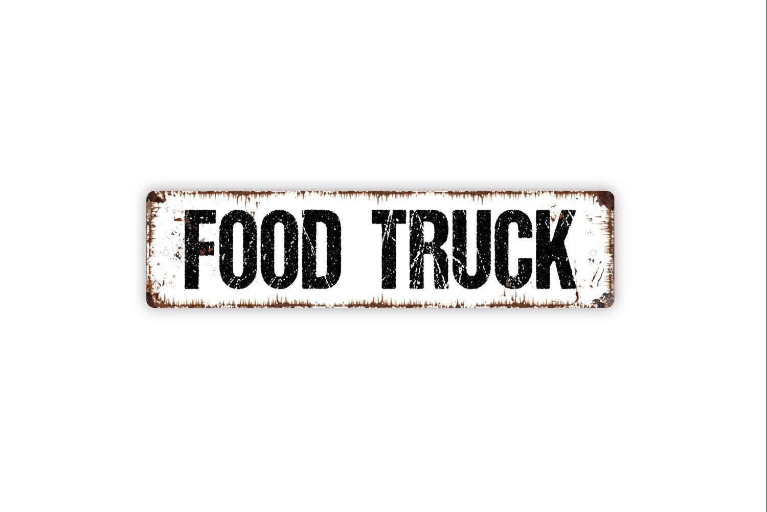 Food Truck Sign - Hot Food Service Eat Lunch Burgers Tacos BBQ Vinyl Sticker Or Metal Street Sign or Door Name Plate Plaque