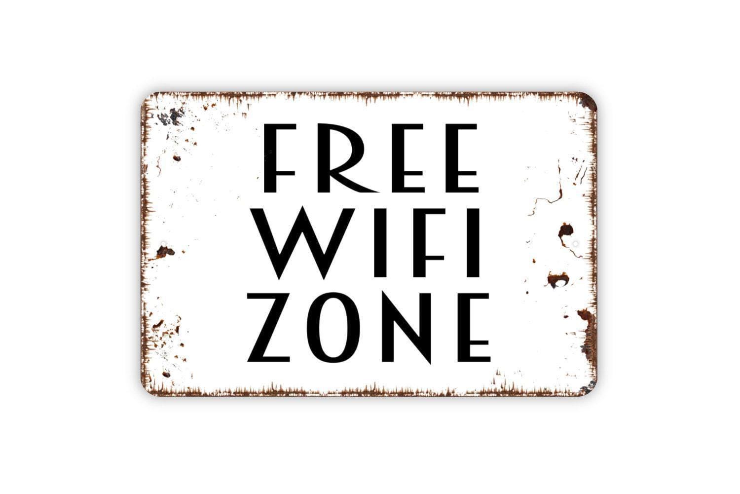 Free Wifi Zone Sign | Internet Access Cafe Coffee Shop Decor | Metal Sign or Vinyl Sticker for Business Home Office Restaurant