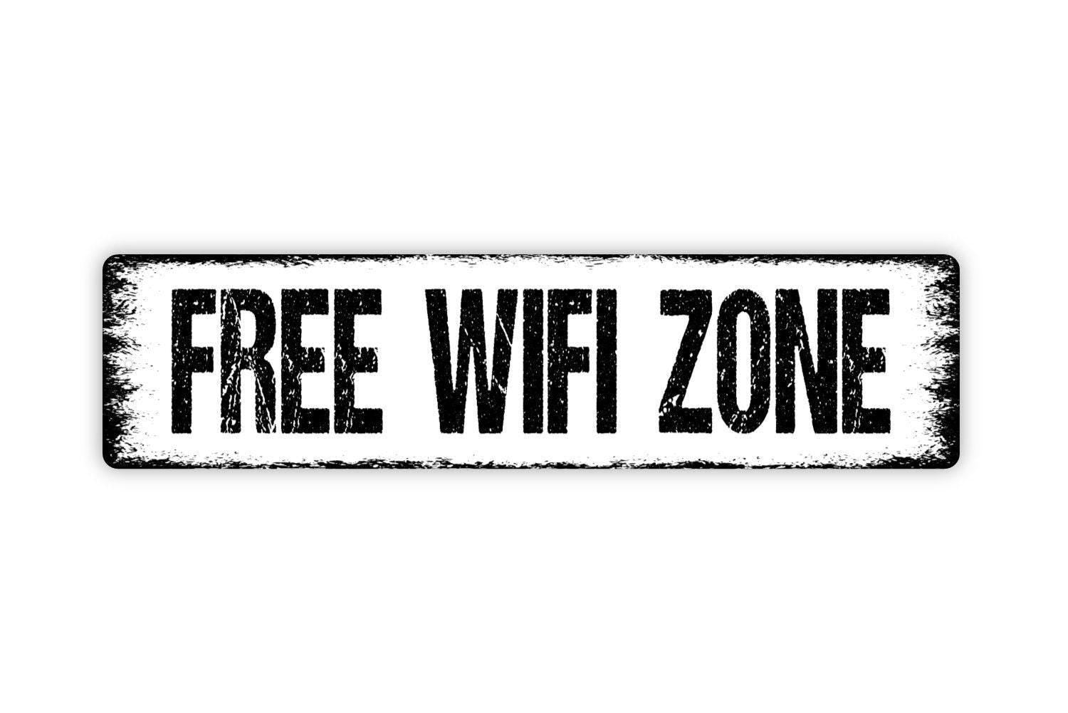 Free Wifi Zone Sign - Wireless Internet Small Business Complementary WIFI Vinyl Sticker Or Street Metal Sign or Door Name Plate Plaque
