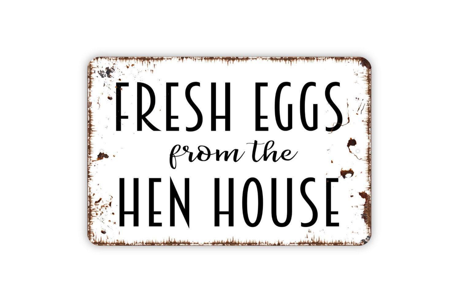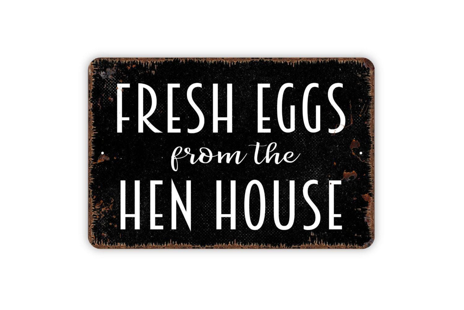 Fresh Eggs From The Hen House Sign | Rustic Farmhouse Wall Sign for Kitchen, Coop, or Homestead | Metal Sign or Vinyl Sticker Country Décor