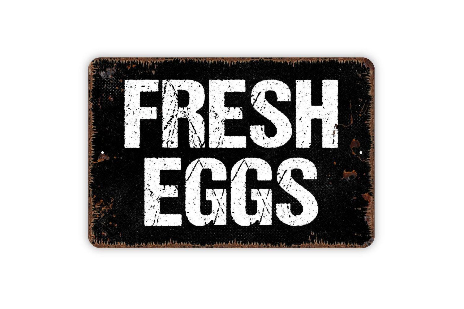 Fresh Eggs Sign | Rustic Farmhouse Kitchen Wall Decor | Farm Fresh Egg Coop Barnyard Market Wall Art | Metal Sign or Vinyl Sticker