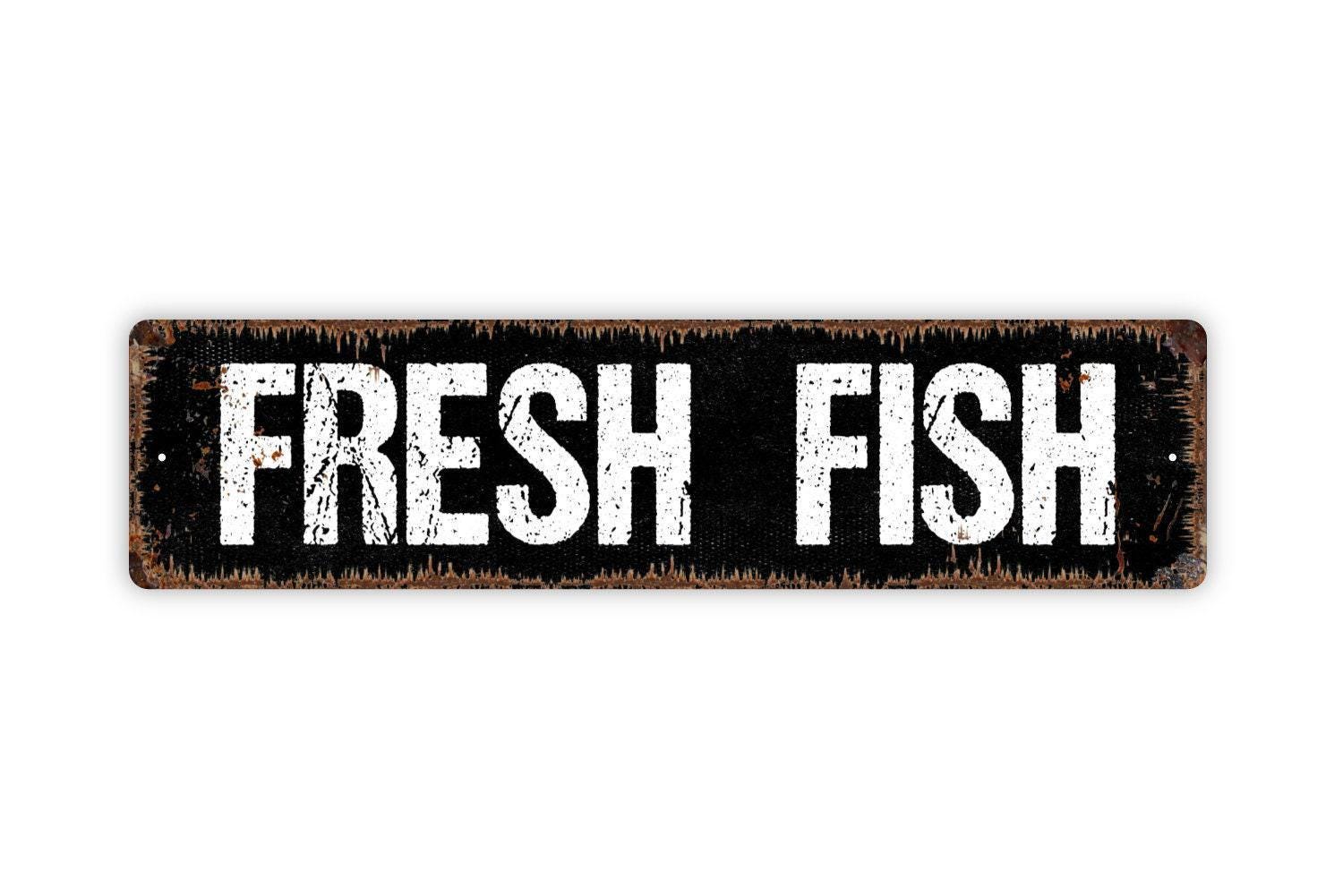 Fresh Fish Sign - Vinyl Sticker Or Metal Street Sign or Door Name Plate Plaque