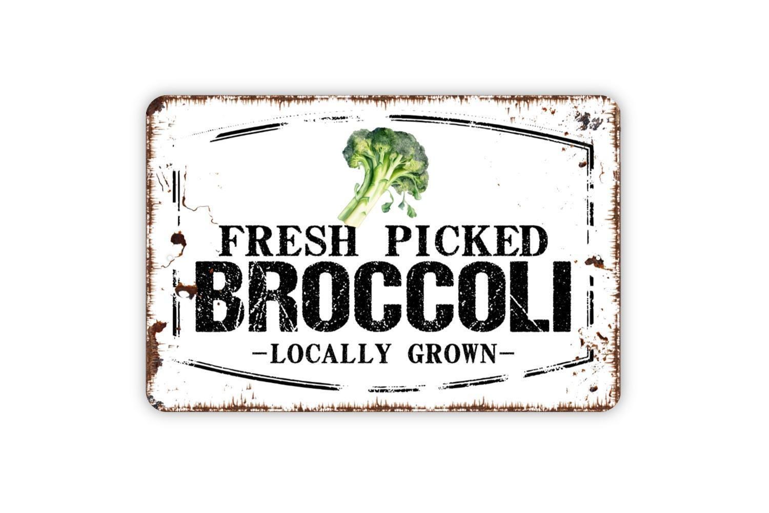 Fresh Picked Broccoli Locally Grown Sign - Farm Fresh Vegetables Farmers Market Metal Sign Wall Art Indoor Or Outdoor