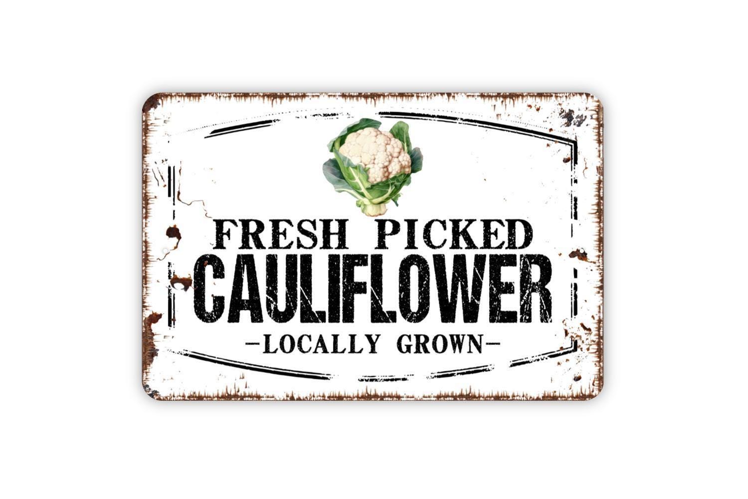 Fresh Picked Cauliflower Locally Grown Sign – Farmers Market Sign – Rustic Farmhouse Kitchen or Garden Sign – Metal Sign or Vinyl Sticker