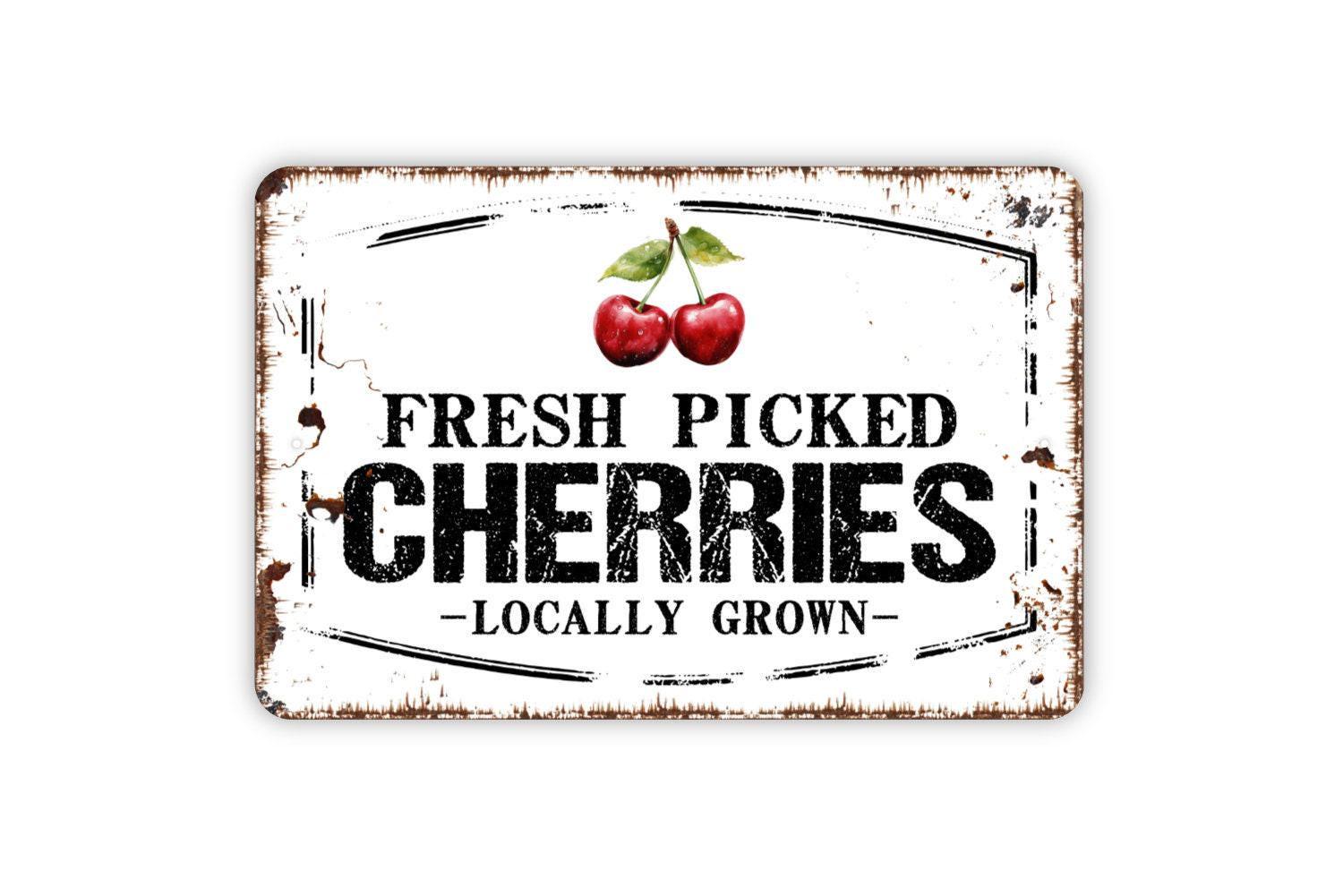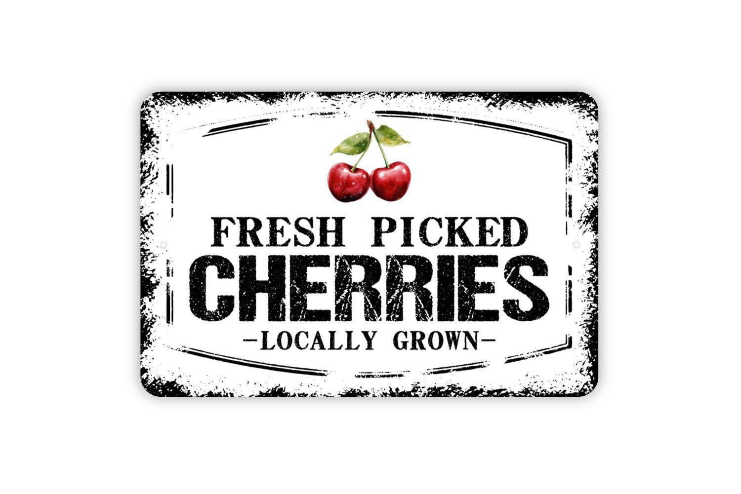 Fresh Picked Cherries Locally Grown Sign - Cherry Orchard Fruit Metal Sign Wall Art Indoor Or Outdoor