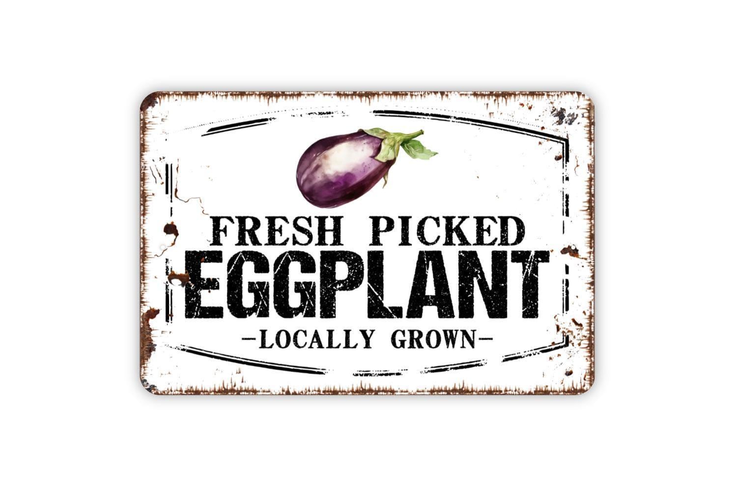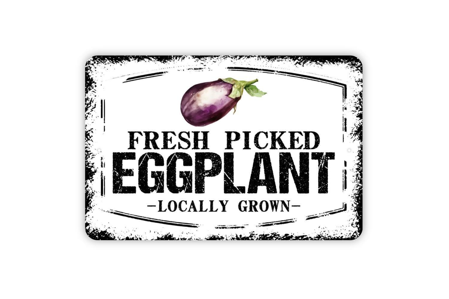 Fresh Picked Eggplant Locally Grown Sign - Egg Plant Farm Fresh Vegetables Farmers Market Metal Sign Wall Art Indoor Or Outdoor