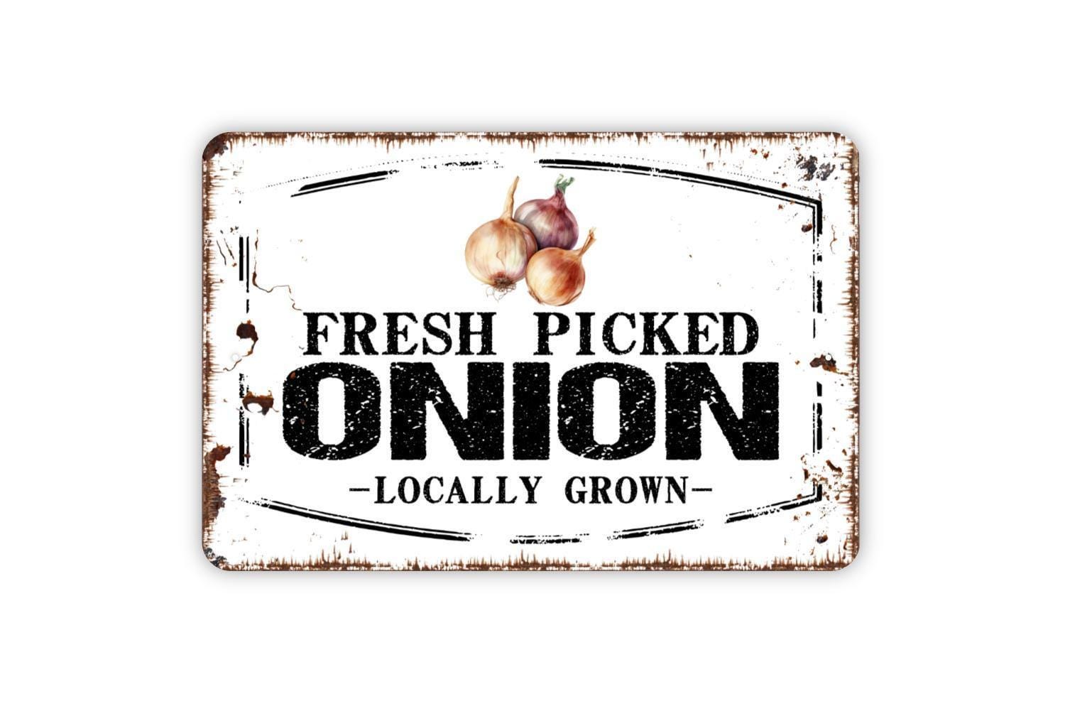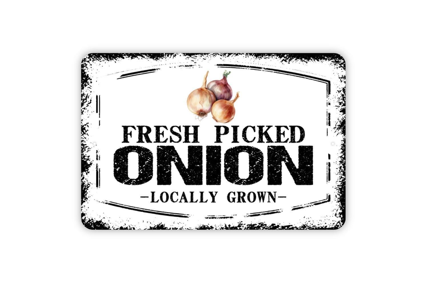 Fresh Picked Onion Locally Grown Sign - Farm Fresh Vegetables Farmers Market Metal Sign Wall Art Indoor Or Outdoor