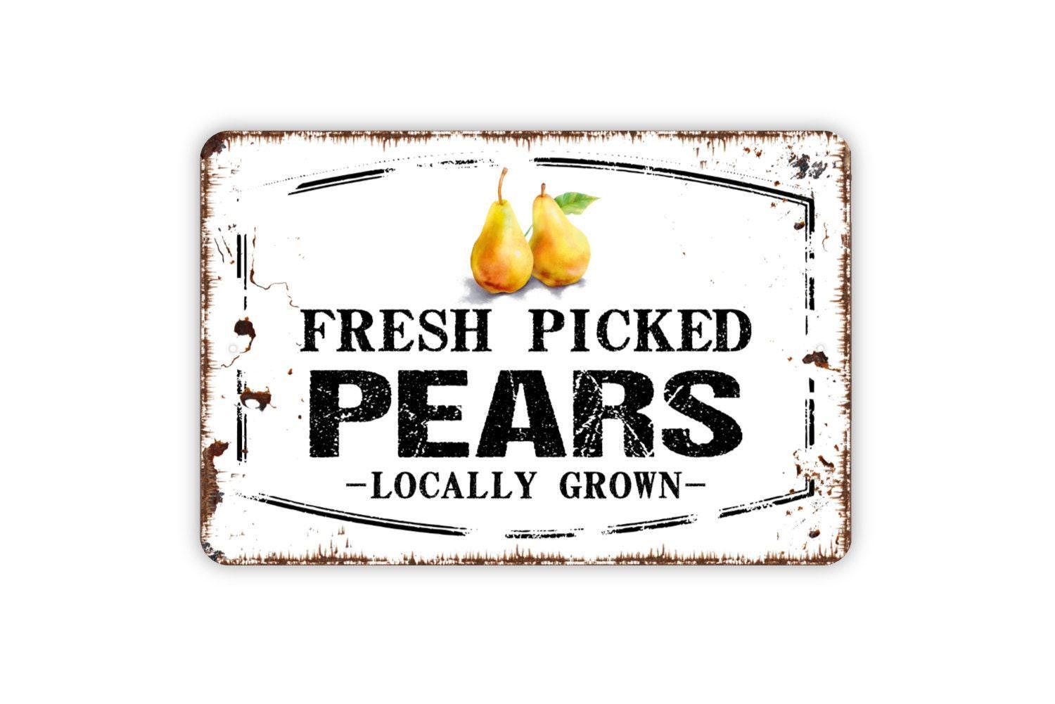 Fresh Picked Pears Locally Grown Sign | Rustic Farmhouse Orchard Decor | Metal Sign or Vinyl Sticker for Kitchen Market Garden