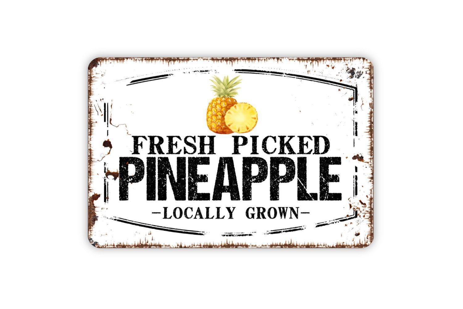 Fresh Picked Pineapple Locally Grown Sign | Rustic Kitchen, Market, or Fruit Stand Wall Sign | Metal Sign or Vinyl Sticker Tropical Decor