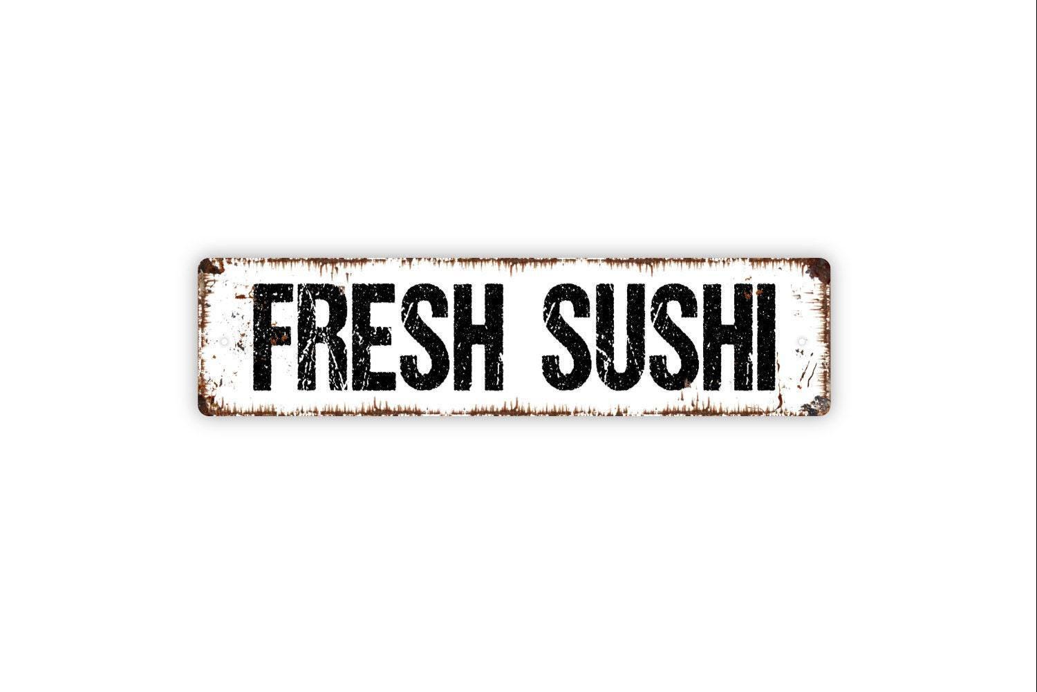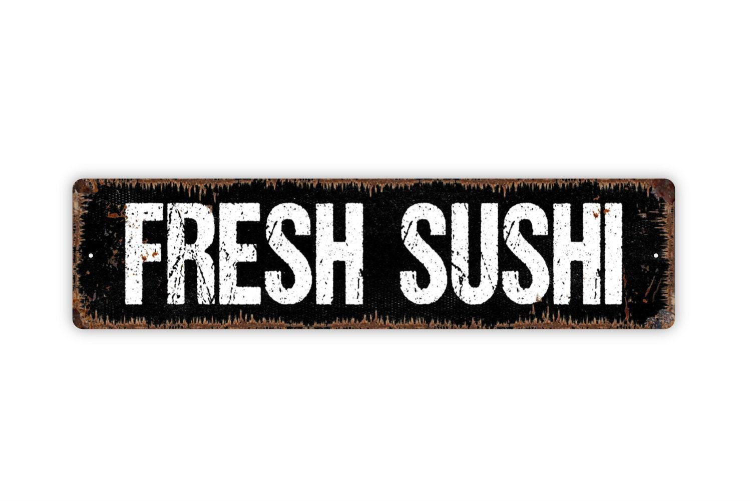 Fresh Sushi Sign – Rustic Kitchen Dining Room Wall Decor – Asian Food Restaurant Cafe Market Sign – Metal Sign or Sticker