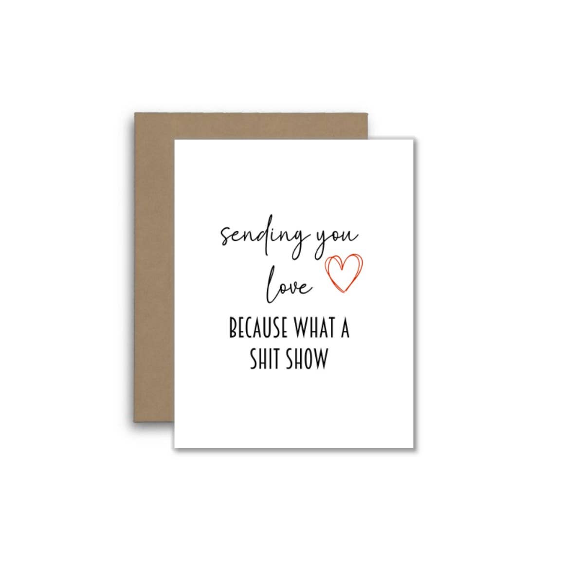 Sending you love—because what a shit show. This hilariously honest greeting card is perfect for friends, coworkers, or family members navigating life’s chaos and needing a laugh.