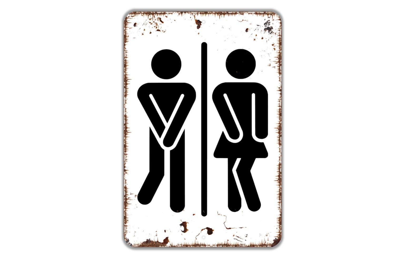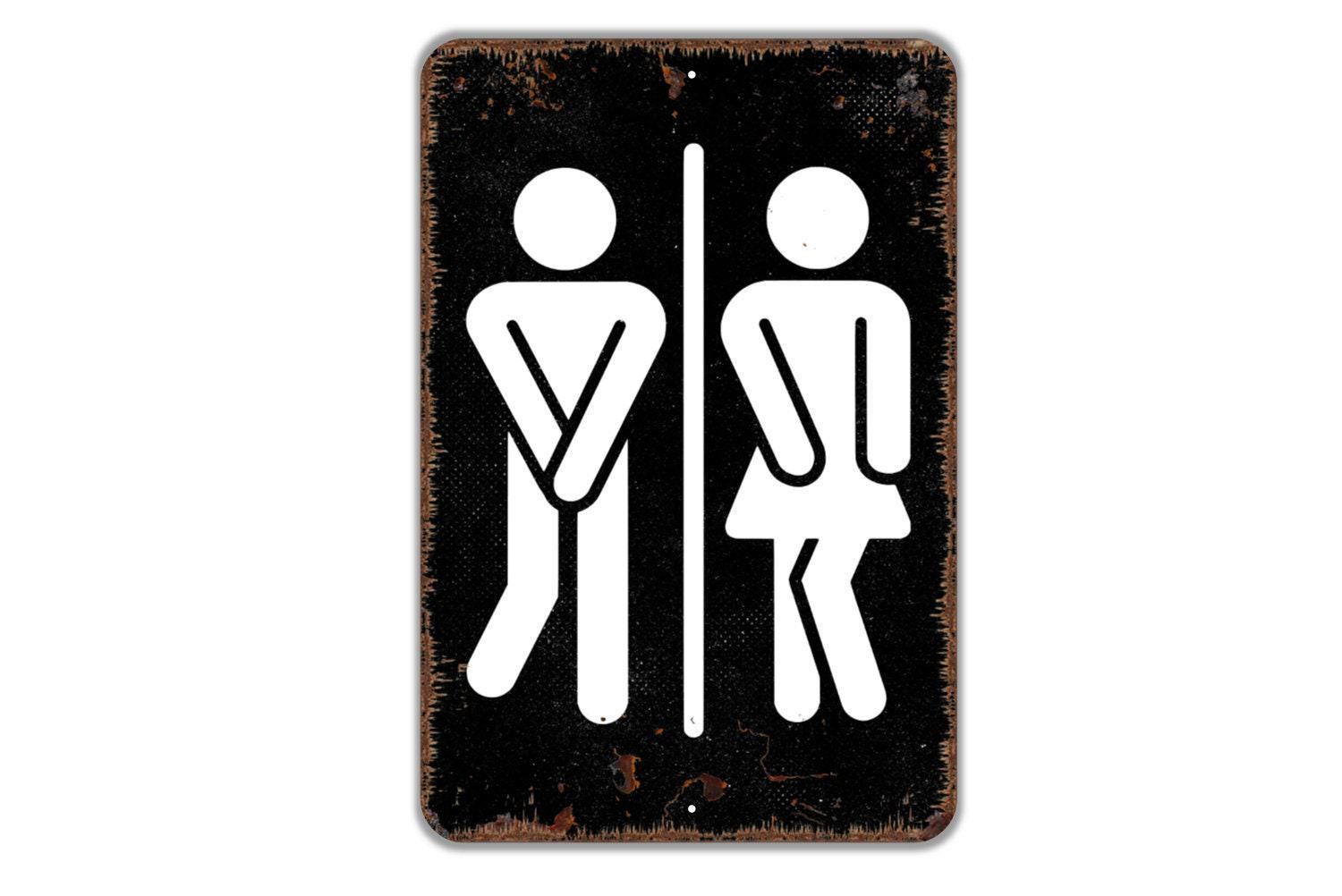 Funny Man Woman With Crossed Legs Sign - Gender Neutral Bathroom Metal Wall Art - Indoor or Outdoor